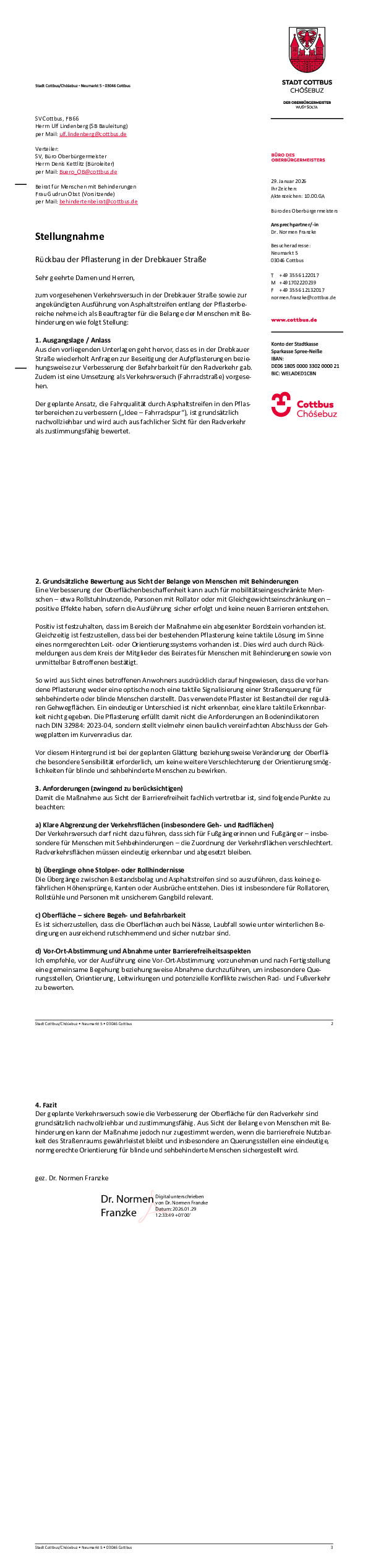 Stellungnahme Drebkauer Straße