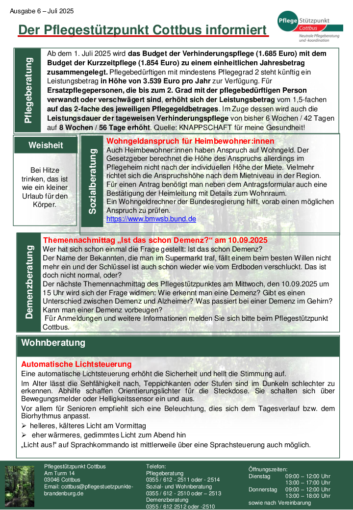 Der Pflegestützpunkt Cottbus informiert - Juli 2025