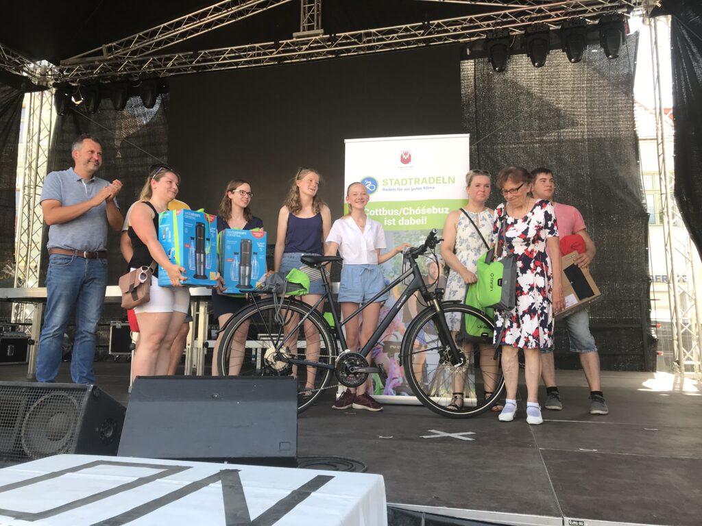 Drei Wochen und mehr als 300.000 Kilometer: Das ist die beeindruckende Bilanz der Cottbuserinnen und Cottbuser beim Stadtradeln 2022. Vom 23.05. bis 12.06.2022 beteiligte sich die Stadt zum dritten Mal an der „Stadtradeln-Kampagne“ des Klima-Bündnisses. Insgesamt legten 1.734 Radelnde organisiert in 81 Teams 334.640 Kilometer zurück. Damit konnte die ausgegebene Zielmarke von 300.000 Kilometern deutlich übertroffen werden und das Ergebnis aus dem Jahr 2021 um über 50.000 km gesteigert werden.