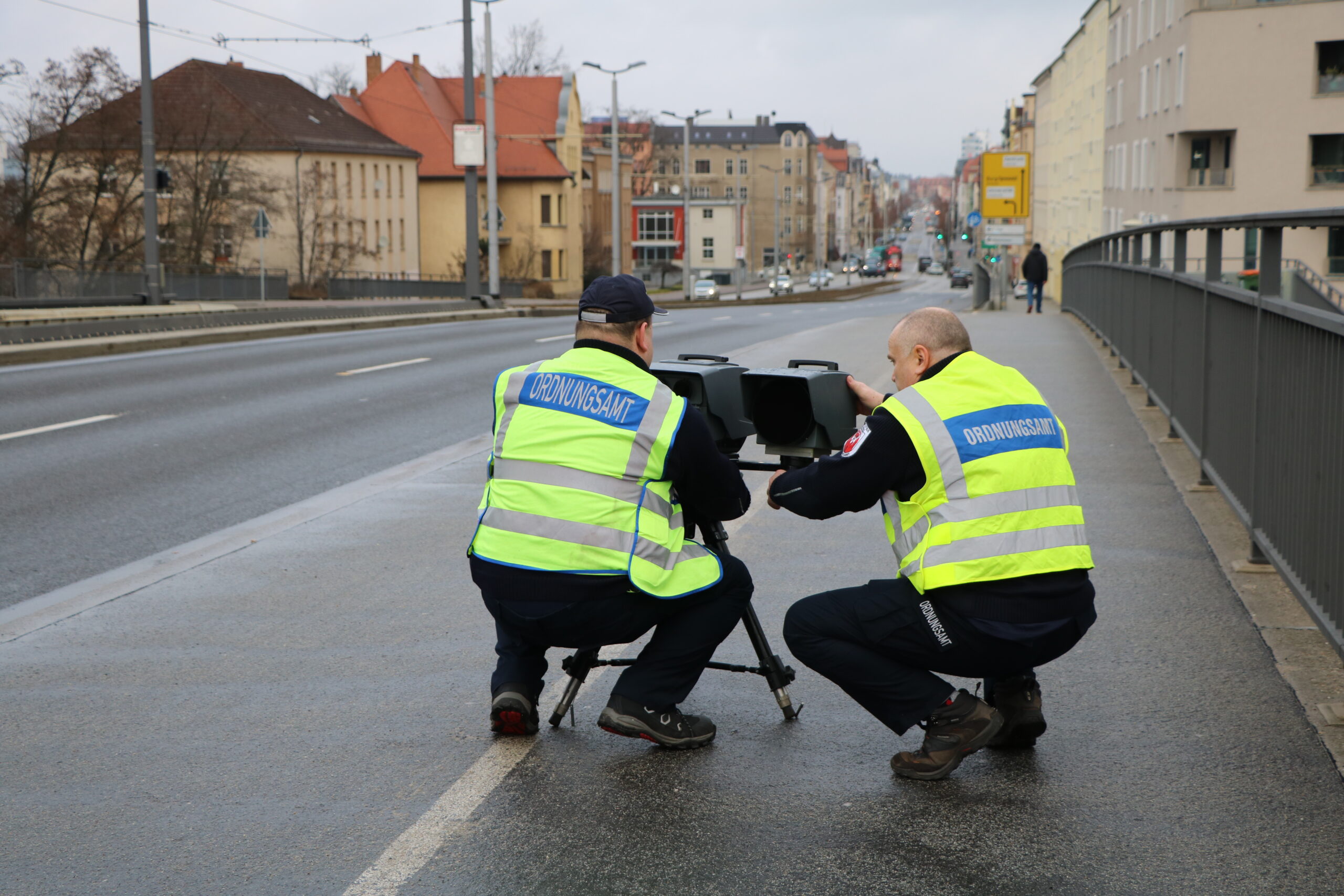 Nun stand der wichtigste Tag für mich bevor – der erste Tag in meinem Patenfachbereich Ordnung und Sicherheit. Zu Beginn wurde ich in der Straßenverkehrsbehörde eingesetzt. Die Nacht zuvor bekam ich vor Aufregung kein Auge zu. Als ich den nächsten Tag im Patenfachbereich ankam stellte sich heraus, dass die Aufregung völlig umsonst war. Ich wurde herzlichst empfangen, allen vorgestellt und über die wichtigsten Aspekte aufgeklärt. Bereits am ersten Tag bekam ich viele Einblicke in die Aufgabenfelder und Zuständigkeiten im Bereich. Am zweiten Tag durfte ich an einer Mitarbeiterversammlung teilnehmen, bei welcher ich tiefgründig mit anstehenden Projekten der Stadt vertraut gemacht wurde. Jeden Tag wurde ich bei verschiedenen Vorgesetzten mit unterschiedlichen Aufgabengebieten eingesetzt, wodurch ich ständig neue Eindrücke sammeln konnte und die Spannung nie kippte. Einerseits schaute ich viel zu, andererseits durfte ich mich jedoch mit einigen Aufgaben allein auseinander setzen. Dabei wurde mir Schritt für Schritt alles erklärt, wodurch ich mich sehr sicher fühlte. Für Fragen jeglicher Art waren meine Vorgesetzten stets ansprechbar. Ich setzte mich mit Themen wie dem Erstellen von Bewohner-/Behindertenparkausweisen, Auswerten von Blitzerfotos, Aufstellen von Messgeräten an der Fahrbahn, Blitzeranhänger überprüfen und verkehrsrechtlichen Anordnungen und Ausnahmegenehmigungen erteilen, auseinander. Darüber hinaus lernte ich den Umgang mit Programmen wie ALVA, Vemags, SASKIA-OWI, Olmera und dem Landesmelderegister, welche die Arbeit erleichterten. Ein absolutes Highlight waren für mich die Freitage, an welchen ich zum Blitzen mitgenommen wurde, da ich die Situation live beobachten konnte. Insgesamt waren die Aufgaben in diesem Bereich sehr spannend und abwechslungsreich, was mir einen sehr guten ersten Eindruck verschafft hat. Durch diese positiven Erfahrungen konnte ich mit gutem Gewissen in die nächsten Fachbereiche starten.