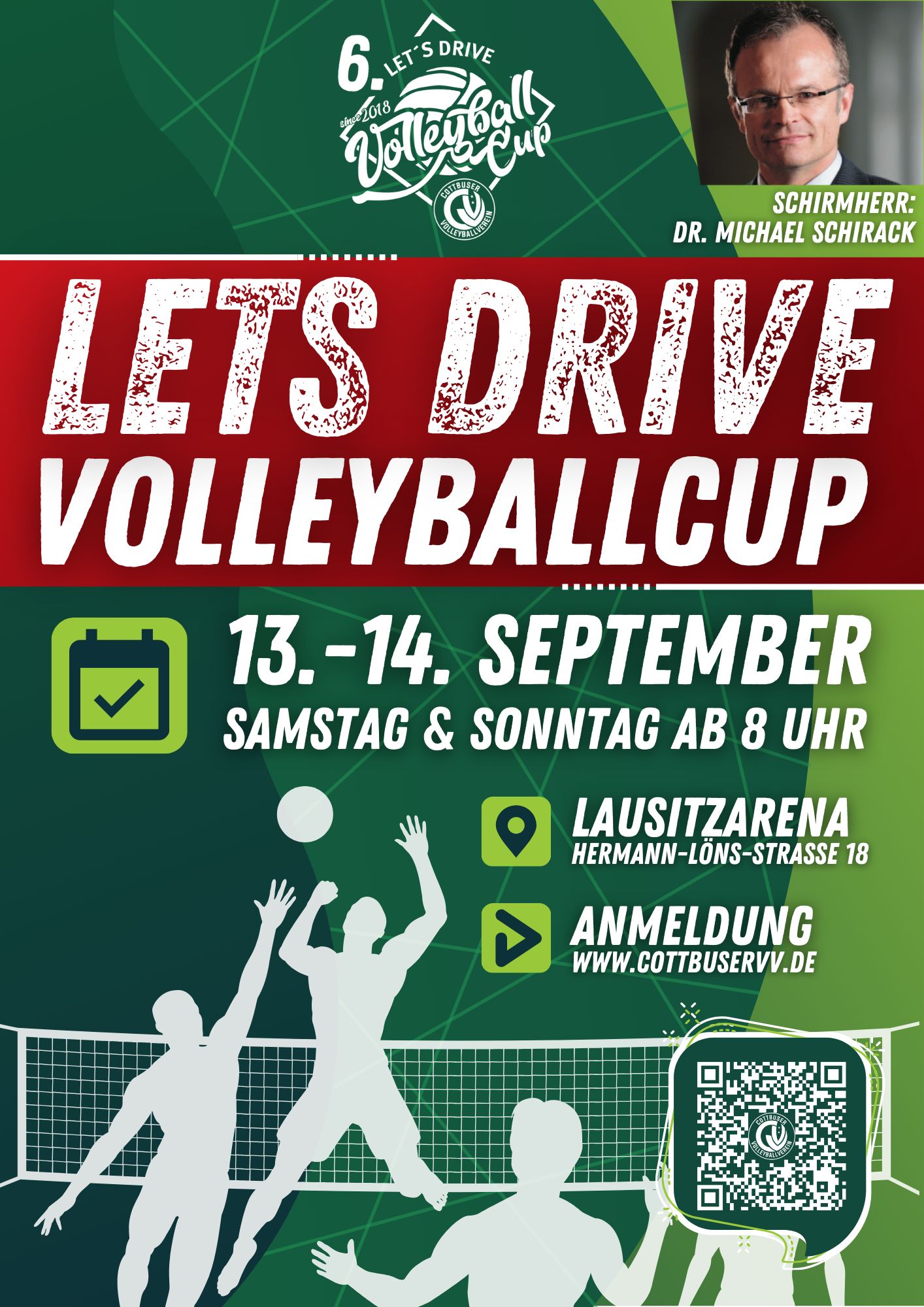 Mit dem „6. Let’s Drive Volleyballcup“ wird laut Ausrichter ein neuer Maßstab mit dem Fokus auf eine freizeitlich wertvolle Sportregion Lausitz gesetzt. Dabei werde eine weiteres wichtiges sportliches Aushängeschild der Sportstadt Cottbus/Chóśebuz präsentiert. Neben guter sportlicher Kost gibt es – unterstützt vom Team des Wochenmarktes der Stadtverwaltung – auch kulinarische Leckerbissen. Dazu gehören frische Salate, Grillspezialitäten sowie kühle Getränke. Insgesamt werden an dem Wochenende bis zu 400 Athletinnen und Athleten erwartet, die selbst spielen, aber auch tatkräftig die Organisation unterstützen oder als Volleyball begeisterte Zuschauer für Stimmung sorgen und die Atmosphäre genießen. Alte und neue Fans sind herzlich willkommen.