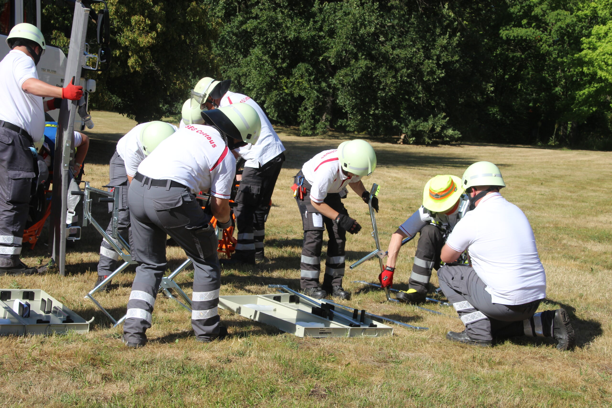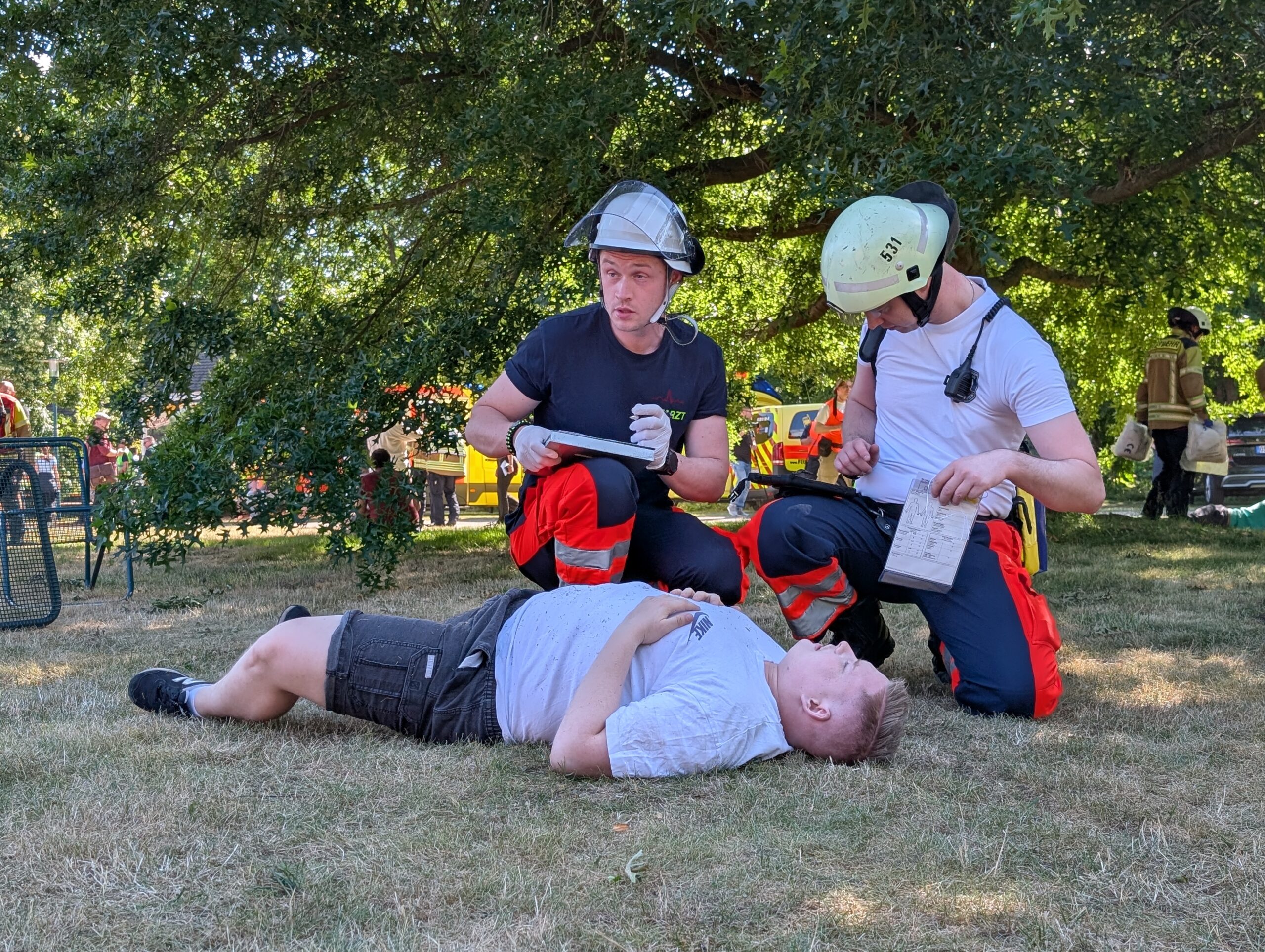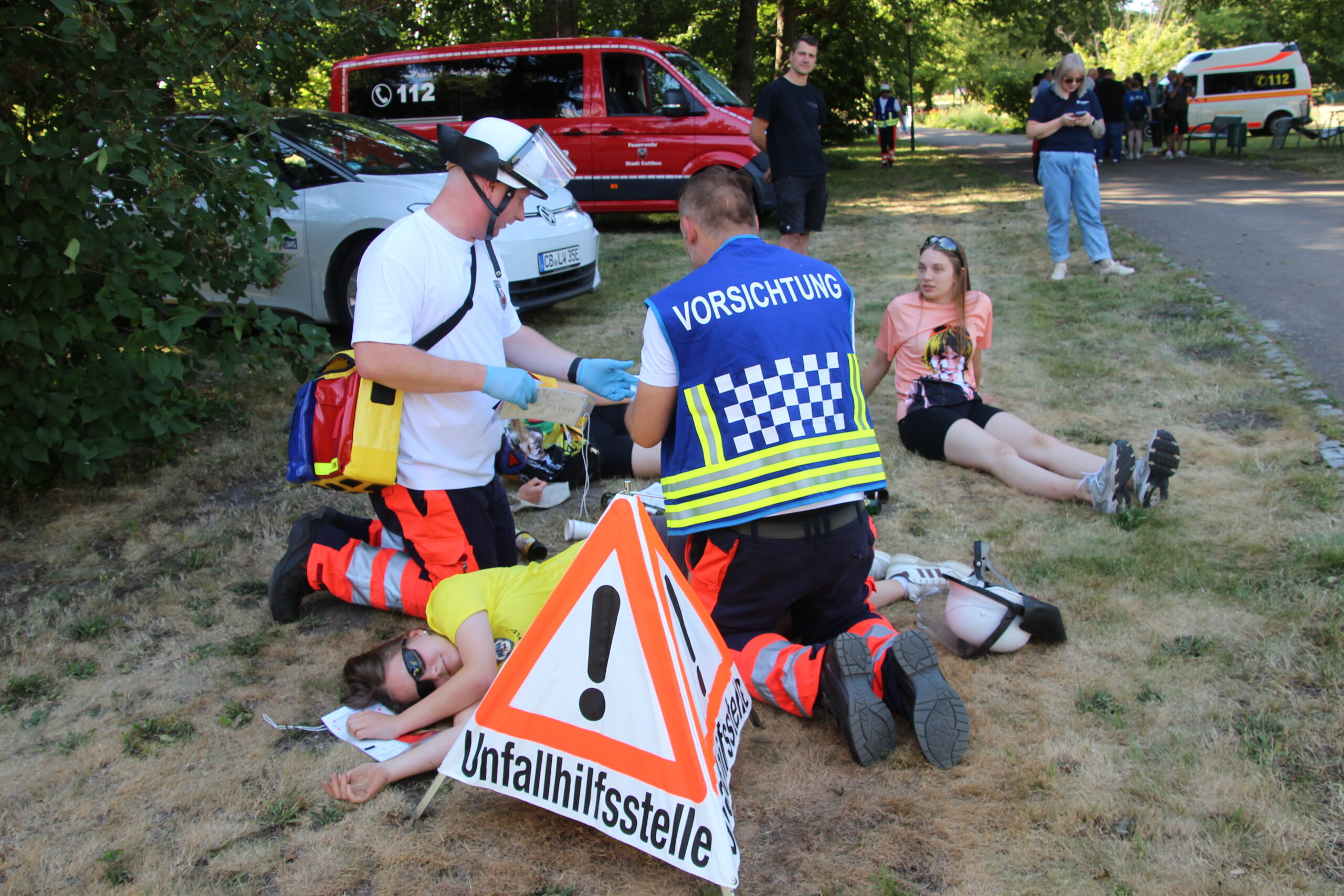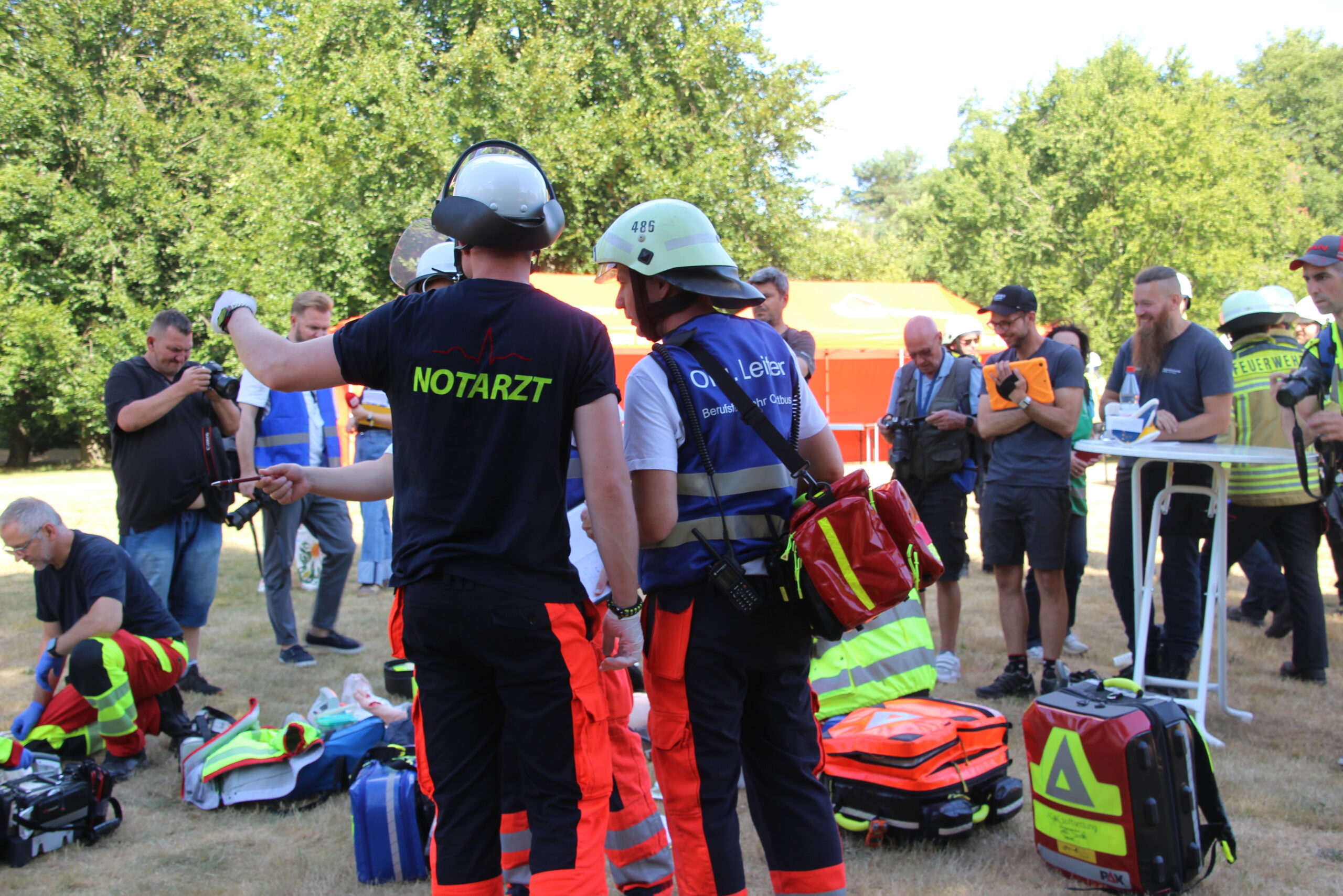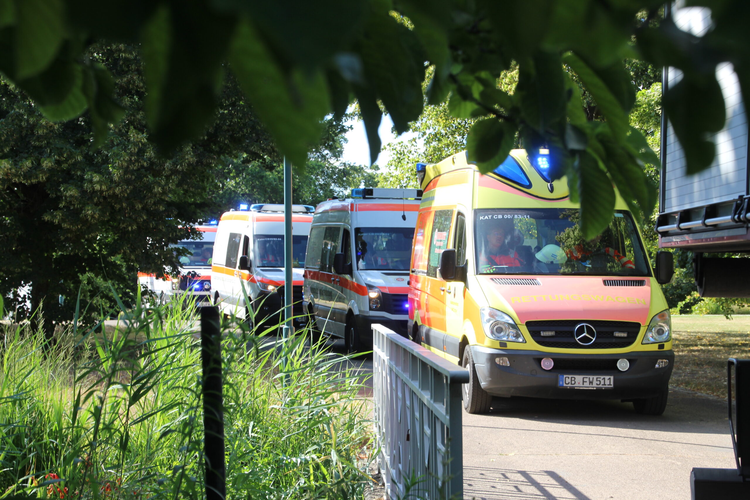 Im Cottbus Spreeauenpark ist am Freitag, 04.07.2025, ein umfangreiches Katastrophenschutz-Szenario abgearbeitet worden. Hunderte Einsatzkräfte hatten 93 „verletzte“ Personen zu sichten, zu versorgen sowie in die Medizinische Universität – Carl Thiem (MUL – CT) zu transportieren. Insgesamt waren ca. 500 Beteiligte als Mimen oder Rettungs- bzw. Unterstützungskräfte im Einsatz.