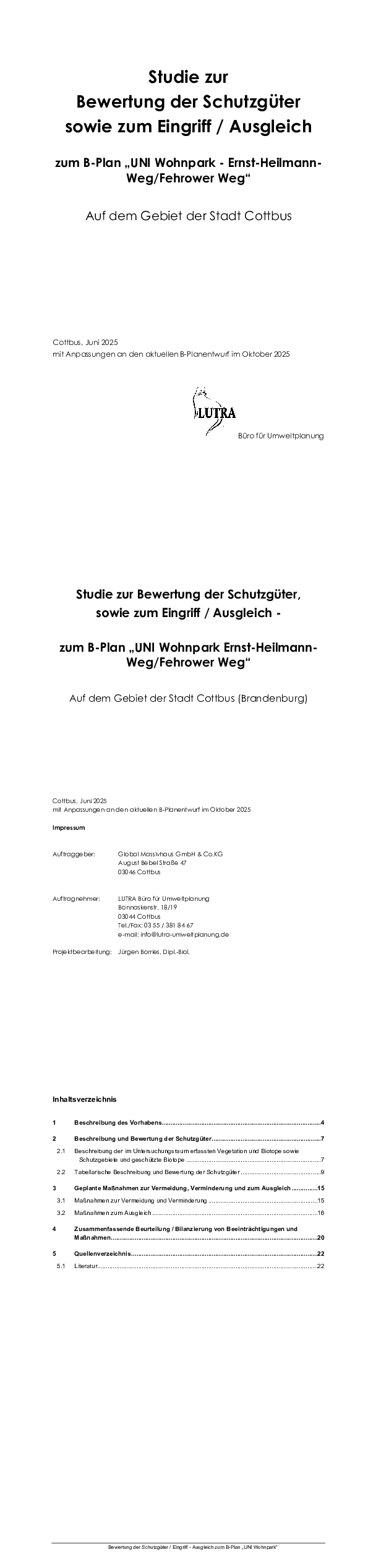 Die Öffentlichkeitsbeteiligung zum Entwurf des Bebauungsplanes in der Fassung vom 30.09.2025 mit der zugehörigen Begründung nebst Umweltbericht und weiteren wesentlichen umweltbezogenen Stellungnahmen erfolgt gemäß § 3 Abs. 2 BauGB. Entsprechend werden die vorgenannten Unterlagen ins Internet im Zeitraum vom 08.12.2025 bis einschließlich 14.01.2026 an dieser Stelle eingestellt.