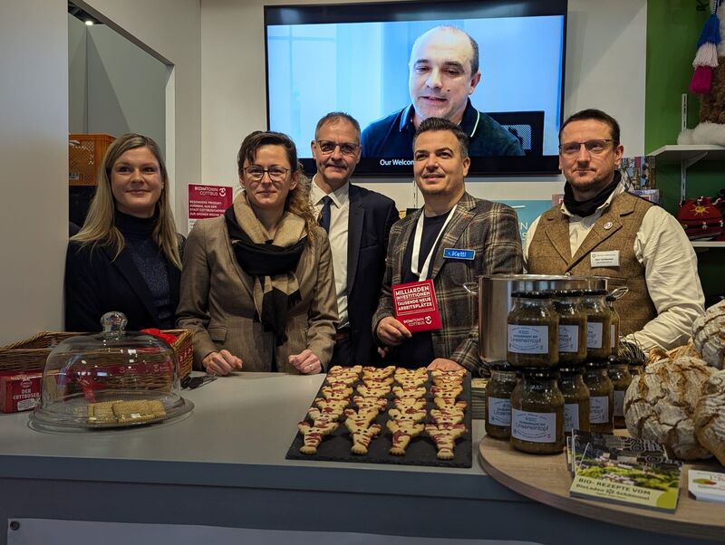 Die Stadt Cottbus/Chóśebuz ist seit diesem Freitag auf der Grünen Woche 2025 dabei. Brandenburgs zweitgrößte Stadt präsentiert sich seit vielen Jahren erstmals wieder auf der beliebten Messe. Im Rahmen der Marketing-Kampagne „Boomtown Cottbus“ ist die Stadtverwaltung mit verschiedenen Partnern wie der Cottbus Messe & Touristik GmbH (CMT), der Entwicklungsgesellschaft (EGC), dem Cottbuser Stadtmarketingverband sowie privaten Partnern wie z.B. dem Bioladen Schömmel oder dem Cottbuser Hafenbüro vertreten. Mit Themen wie Cottbuser Ostsee, Fürst Pückler, Cottbuser Postkutscher, aber auch dem Strukturwandel und sein Milliarden-Investitionen will die Stadt stärker überregional auf sich aufmerksam machen.