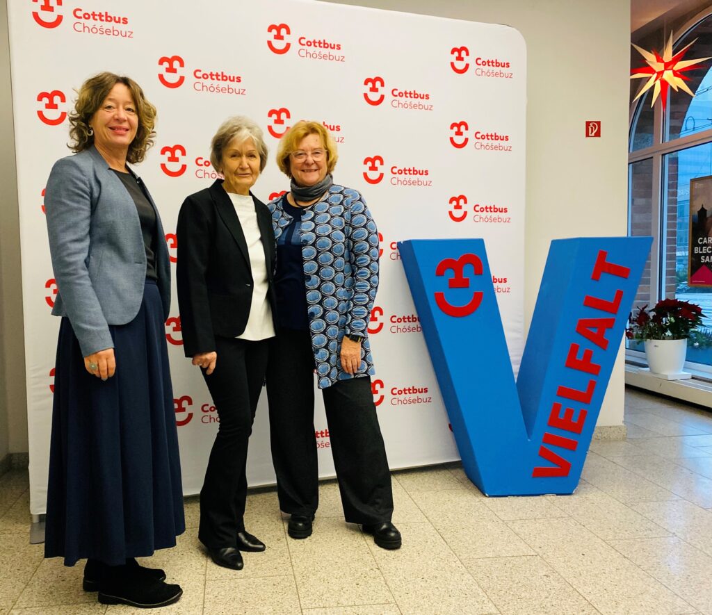 Ein besonderer Höhepunkt für die Stadt Cottbus/Chóśebuz war die Auszeichnung von Erika Hänsch, die den „Veltener Ehrenteller“ für ihr jahrzehntelanges Wirken in der Seniorenarbeit erhielt.