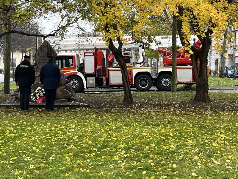 Anlässlich des Volktrauertages und kurz vor dem Totensonntag versammeln sich die Kameradinnen und Kameraden der Freiwilligen- sowie der Berufsfeuerwehr Cottbus in stillem Gedenken am Feuerwehrdenkmal am Neustädter Platz.