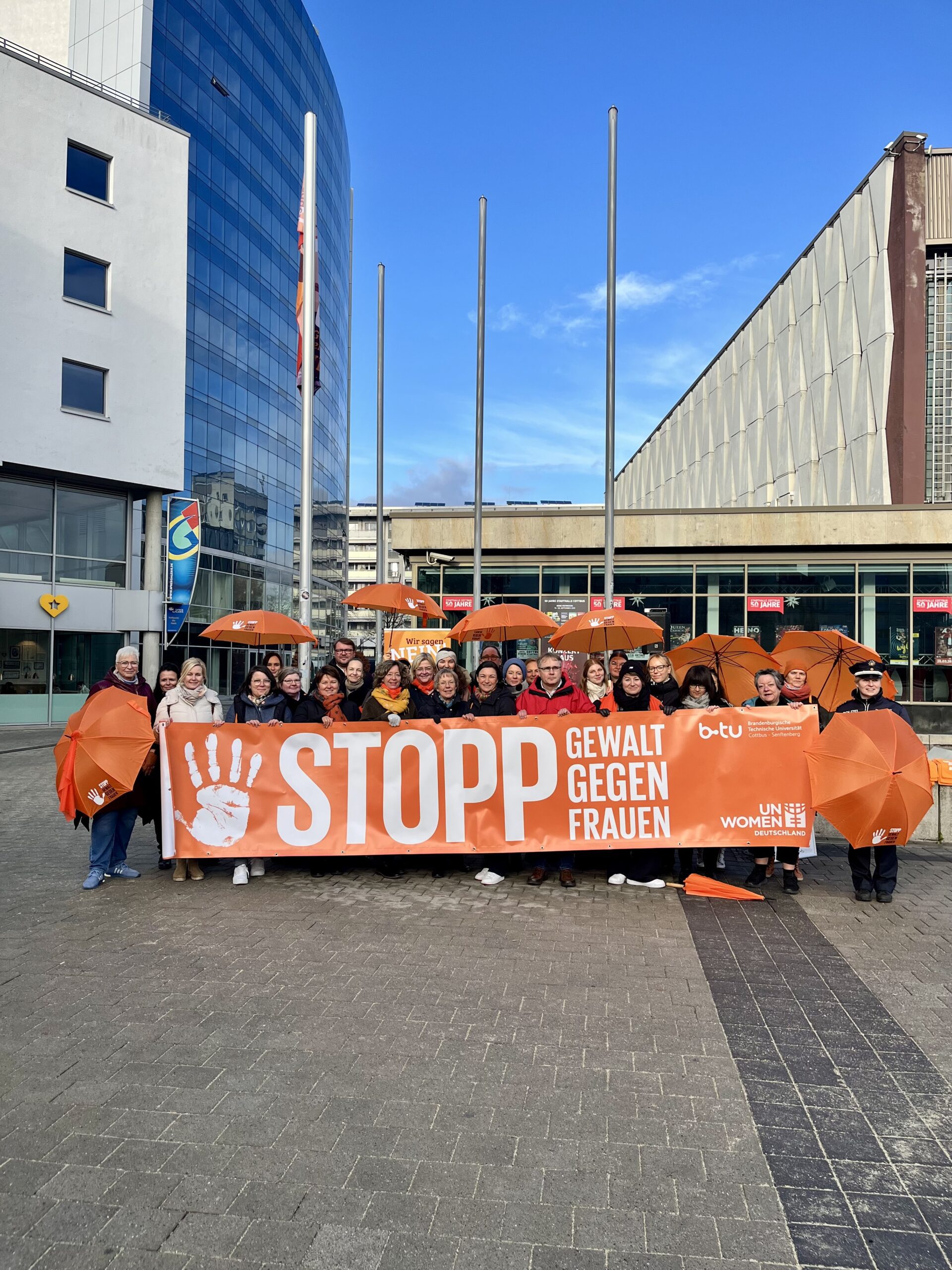 Am 25. November setzt die Stadt Cottbus/Chóśebuz ein sichtbares Zeichen gegen Gewalt an Frauen. Um 13:00 Uhr wird auf dem Stadthallenvorplatz die orangefarbene Fahne gehisst – gemeinsam mit Vertretungen der Stadtspitze und allen, die ein Zeichen der Solidarität setzen möchten.