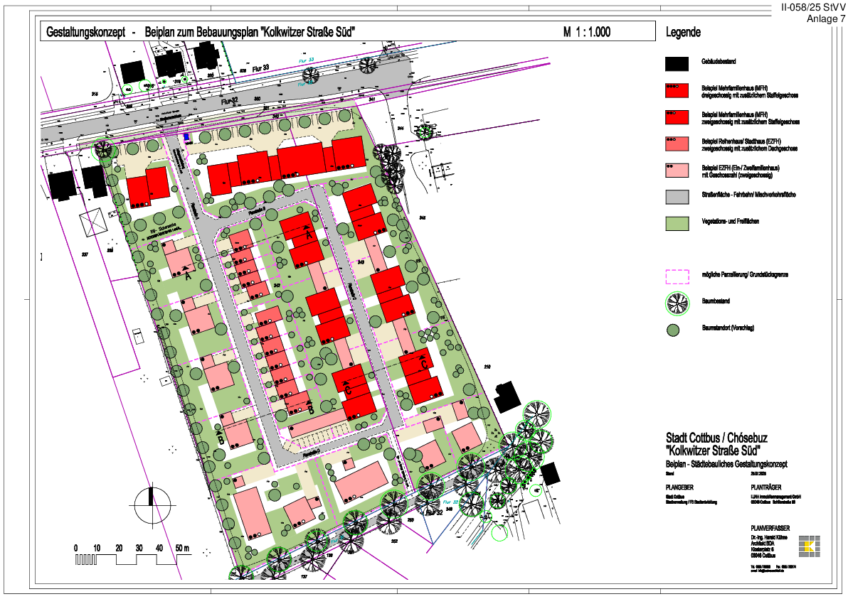 Die Stadtverordnetenversammlung der Stadt Cottbus/Chóśebuz hat in ihrer Sitzung am 24.09.2025 den Entwurf des Bebauungsplanes Nr. W/50/126 „Kolkwitzer Straße Süd“ einschließlich der zugehörigen Begründung in der Fassung vom 25.07.2025 gebilligt und die Öffentlichkeitsbeteiligung gemäß § 3 Abs. 2 Baugesetzbuch (BauGB) beschlossen.