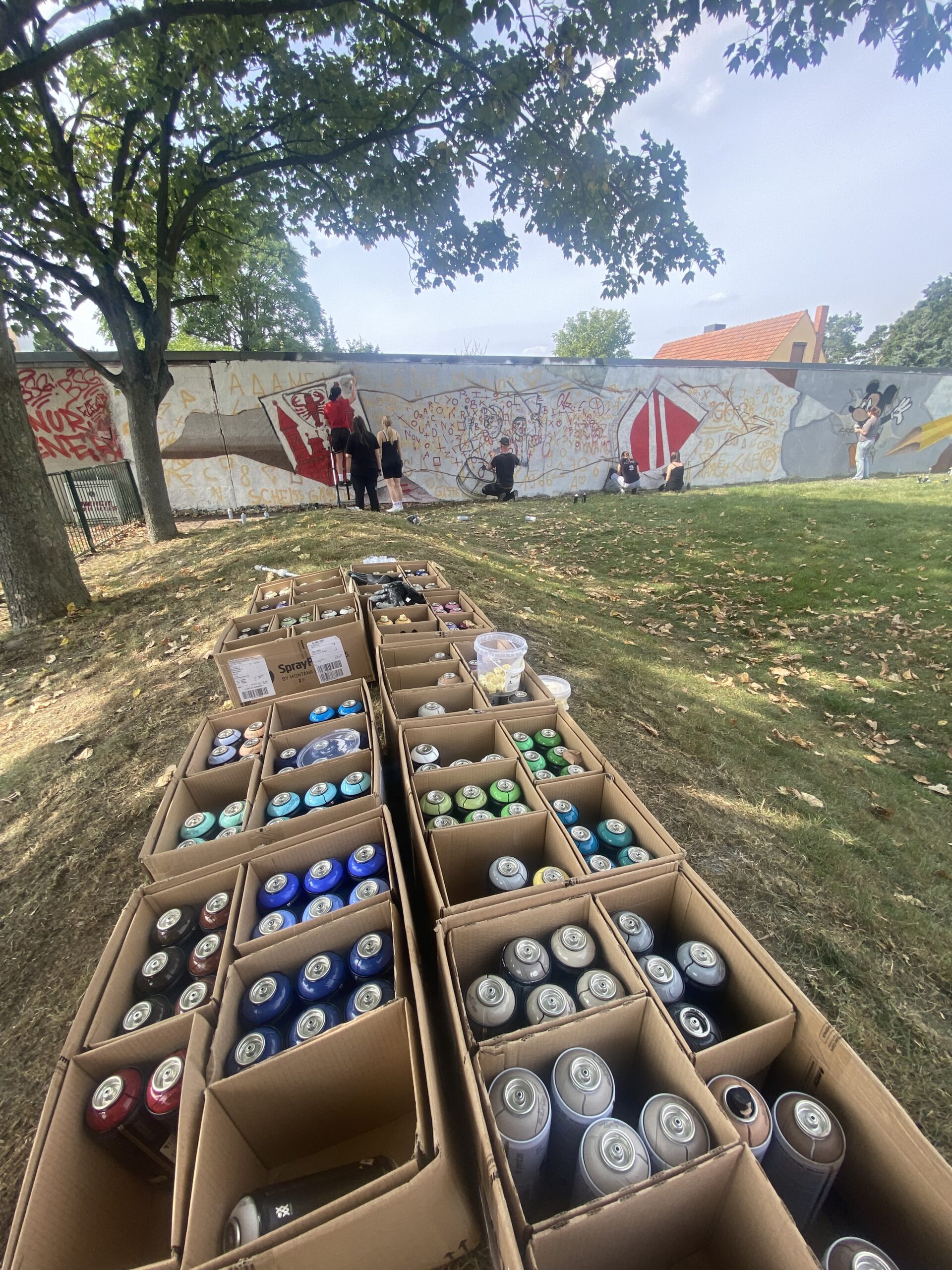 Die Schmellwitzer Oberschule hat erneut ein breit angelegtes Graffiti-Projekt gestartet, das Schule, Stadtteil und Kunst miteinander verbindet. In Zusammenarbeit mit dem Stadtteilmanagement und externen Künstlern – Andre Schulze und Johannes Mattner – entwickelten Schülerinnen und Schüler der Klassen 8 und 9 eigenständig Entwürfe, um eine bislang verschmierte Wand auf dem Schulgelände in ein positives Aushängeschild der Oberschule zu verwandeln. Die jungen Menschen konnten sich aktiv beteiligen, Verantwortung übernehmen und eigene Ideen einbringen. Lernen wurde durch praxisnahe Bildung in Kunst, Kommunikation und Teamarbeit gefördert, ergänzt durch Reflexion über Gestaltung, Farbwirkung und Botschaften. Gemeinsames Schaffen stärkt die Identifikation mit der Schule, schafft Verbindungen zwischen unterschiedlichen Alters- und Interessensgruppen und fördert Respekt sowie Zusammenhalt. Die Identität der Stadt und der Schule wurde sichtbar, indem lokale Themen in die Gestaltung eingeflossen sind, insbesondere der FC Energie Cottbus.