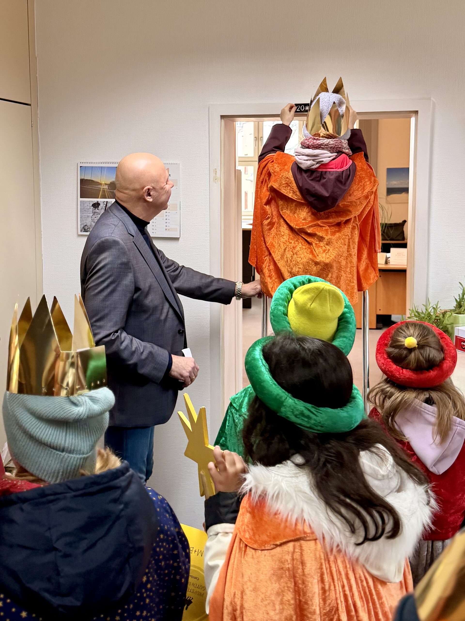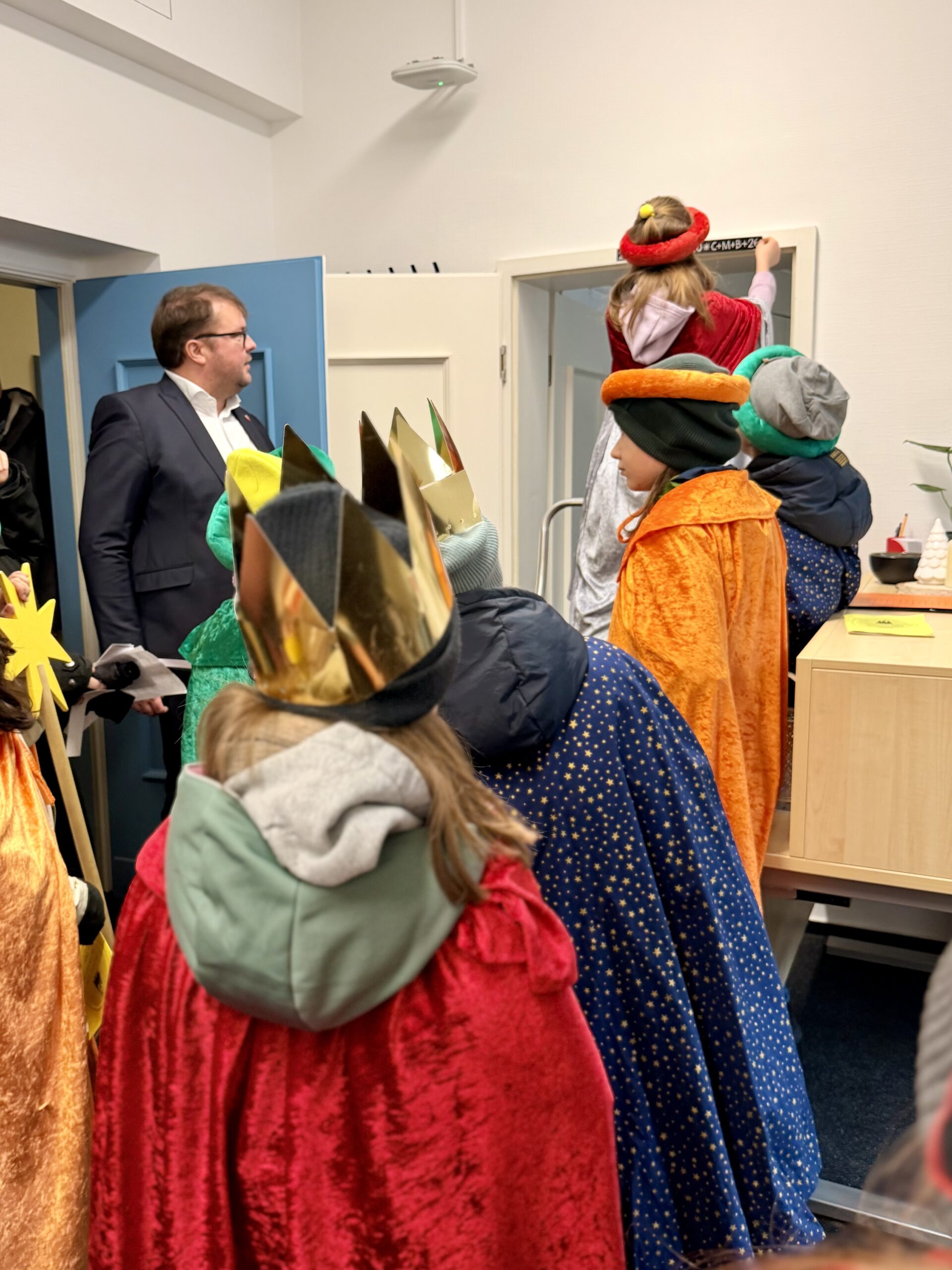Am Dienstag, 06.01.2026, haben Kinder der Katholischen Pfarrei Cottbus traditionell das Rathaus besucht und den Segen für das neue Jahr überbracht. Sie wurden von Oberbürgermeister Tobias Schick und der Rathausspitze empfangen. Nicht nur das Rathaus selbst, sondern auch das Büro des Oberbürgermeisters, der Bürgermeisterin, der Beigeordneten und der Dezernenten wurden gesegnet. OB Schick überreichte den Kindern im Rahmen ihres Besuchs eine Spende die während der Stadtverordnetenversammlung im Dezember gesammelt wurde.