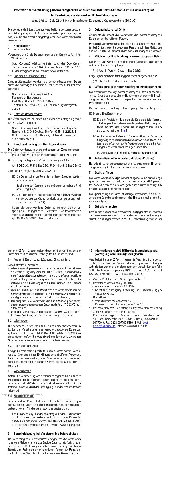 Information zur Verarbeitung personenbezogener Daten durch die Stadt Cottbus/Chóśebuz im Zusammenhang mit der