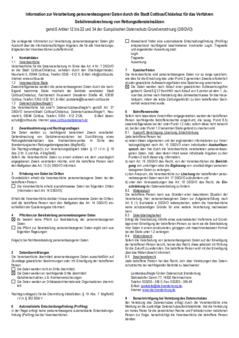 Information zur Verarbeitung personenbezogener Daten durch die Stadt Cottbus/Chóśebuz für das Verfahren