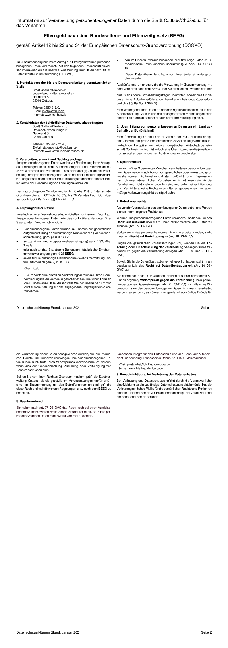 Im Zusammenhang mit Ihrem Antrag auf Elterngeld werden personenbezogenen Daten verarbeitet. Mit den folgenden Datenschutzhinweisen informieren wir Sie über die Verarbeitung Ihrer Daten nach Art. 13 Datenschutz-Grundverordnung (DS-GVO).
