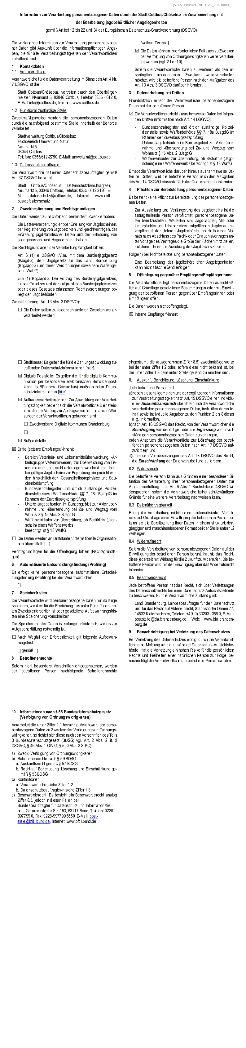 Information zur Verarbeitung personenbezogener Daten durch die Stadt Cottbus/Chóśebuz im Zusammenhang mit der