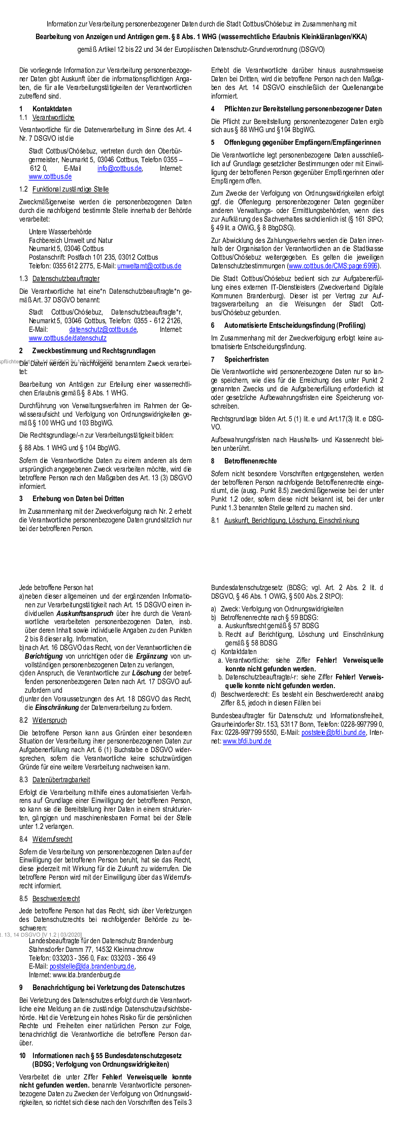 Information zur Verarbeitung personenbezogener Daten durch die Stadt Cottbus/Chóśebuz im Zusammenhang mit