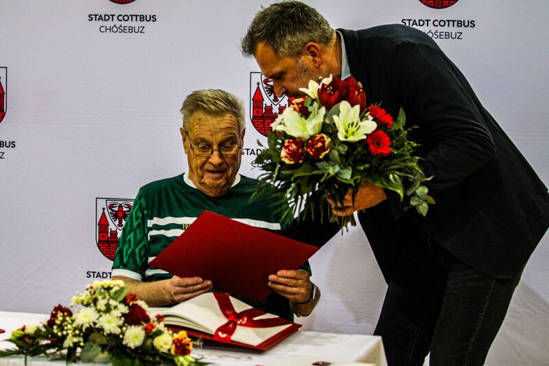 Eintragung in die Ehrenchronik der Stadt Cottbus/Chóśebuz am 05.01.2025 zu Beginn des Hallenfußballturniers der SG Groß Gaglow in der LausitzArena