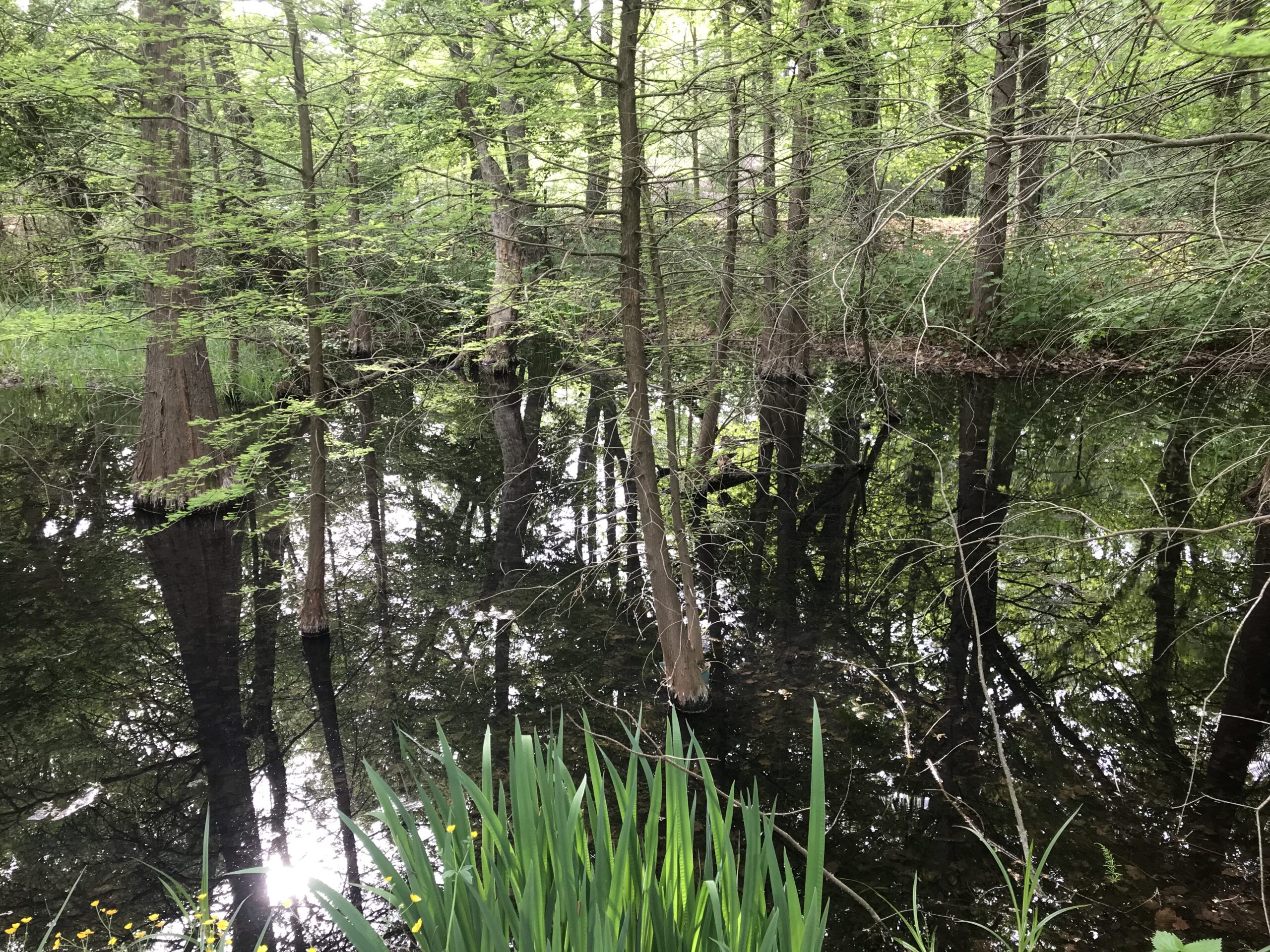 - Der Tertiärwald ist die Nachgestaltung der Flusslandschaft der Ur-Elbe mit heute wachsenden Pflanzen, wie sie vor etwa 10 – 12 Millionen Jahren in der Niederlausitz anzutreffen war.