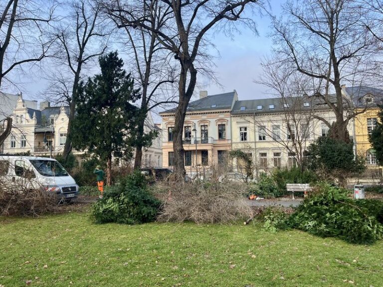 Im Park an der Puschkinpromenade beginnen in diesen Tagen – abhängig von der Witterung – weitere planmäßige Pflegearbeiten im Gehölz