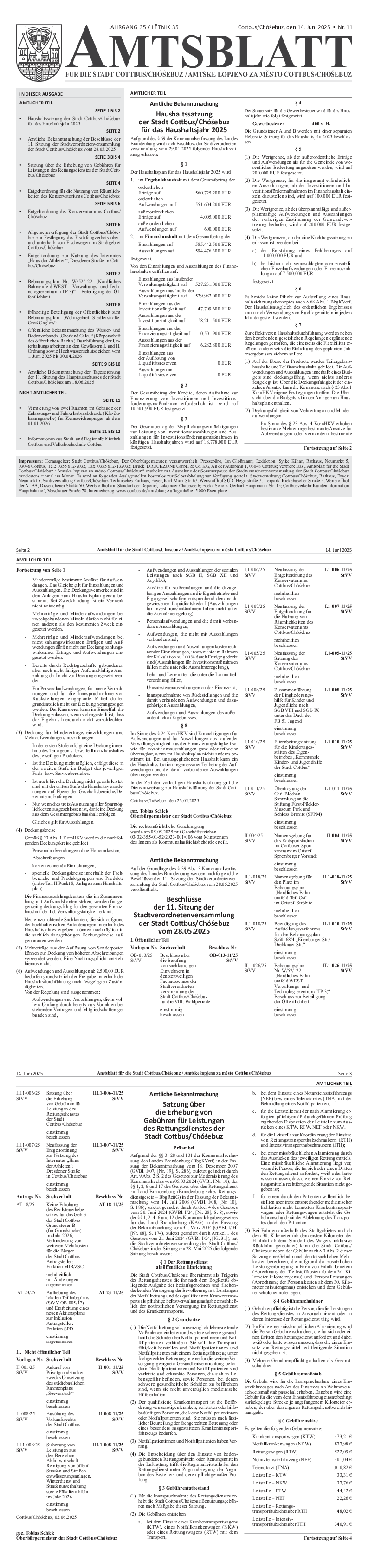 - Haushaltssatzung der Stadt Cottbus/Chóśebuz für das Haushaltsjahr 2025