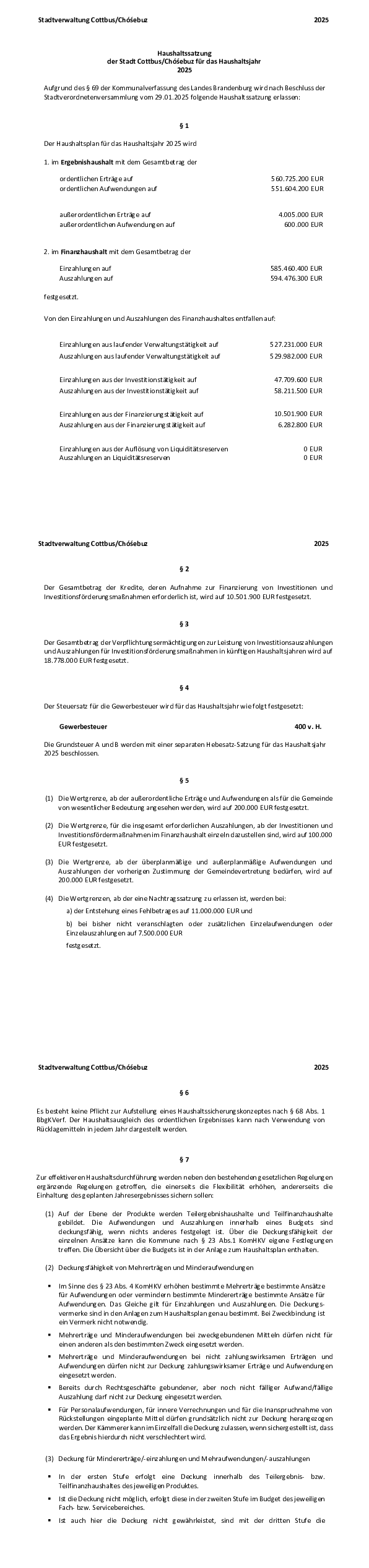Haushaltssatzung 2025