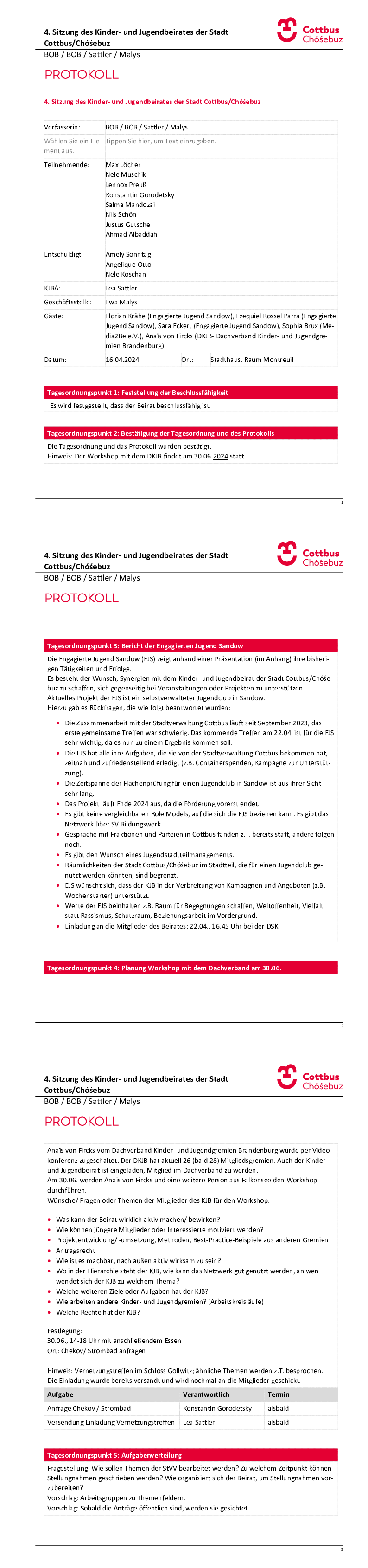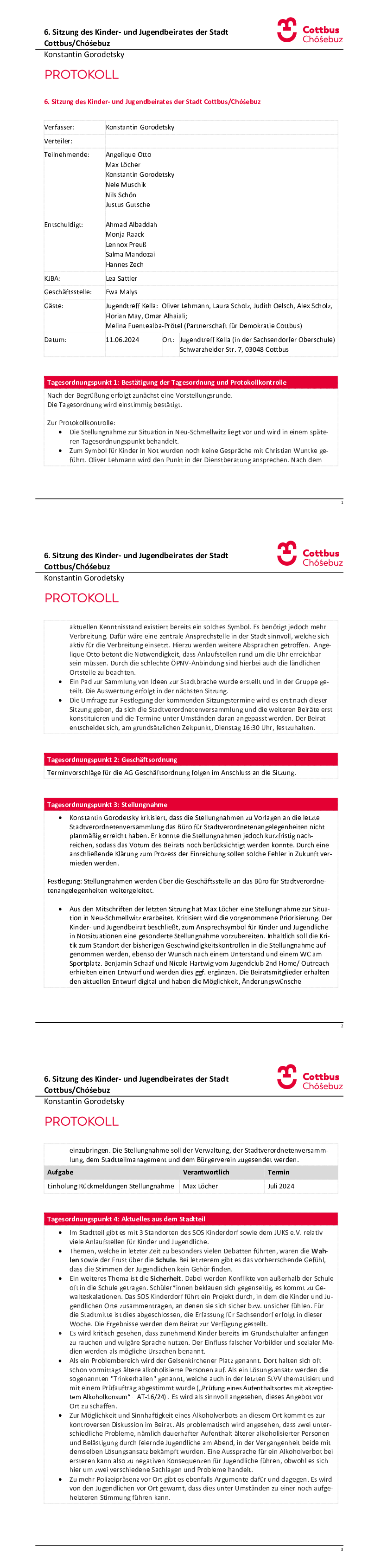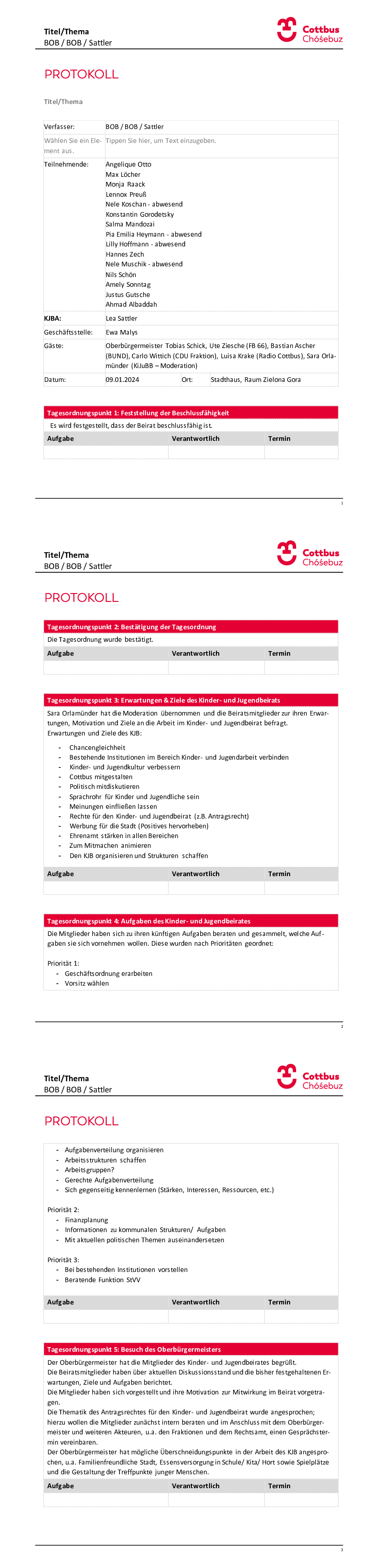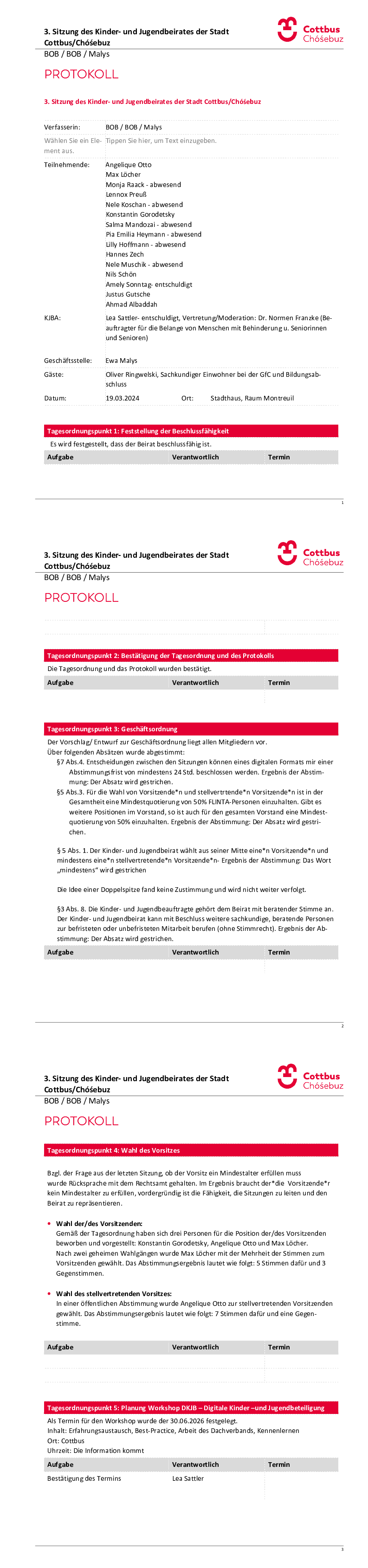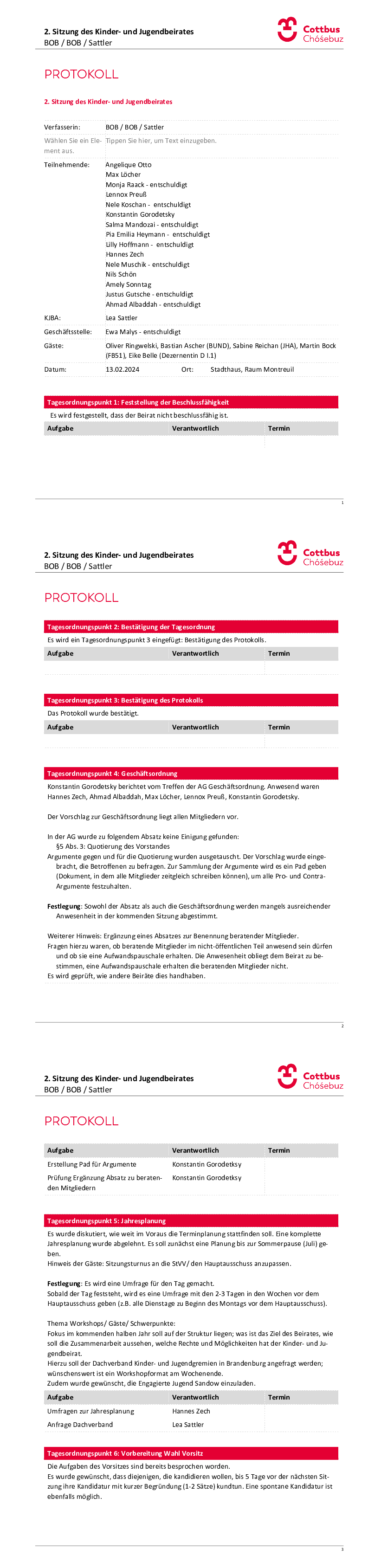 Archiv: Protokolle der Sitzungen des Kinder- und Jugendbeirates der VII. Wahlperiode