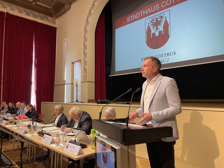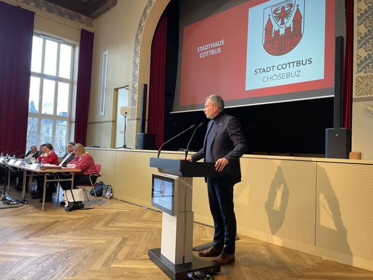 Sehr geehrter Herr Vorsitzender, sehr geehrte Damen und Herren Stadtverordnete, liebe Cottbuserinnen und Cottbuser, zur ersten Stadtverordnetenversammlung im neuen Jahr zunächst Ihnen alles Gute, beste Gesundheit und ein spannendes Jahr in ehrenamtlicher kommunaler Verantwortung – auch wenn es für die eine oder den anderen sicher nur noch ein halbes Jahr sein wird.