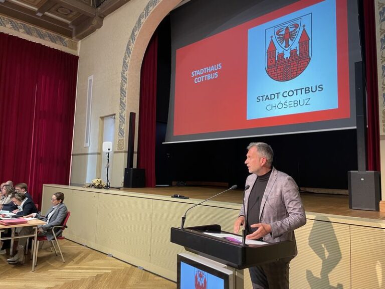Sehr geehrter Herr Vorsitzender, sehr geehrte Damen und Herren Stadtverordnete, liebe Cottbuserinnen und Cottbuser, mit unserer Stadt ist derzeit gut Staat zu machen. Am vergangenen Freitag haben wir gemeinsam mit Innenminister Michael Stübgen den landesweit ersten Katastrophenschutz-Leuchtturm eingeweiht. Sie kennen das Konzept dahinter: 15 solcher Leuchttürme werden derzeit ausgestattet. Dazu