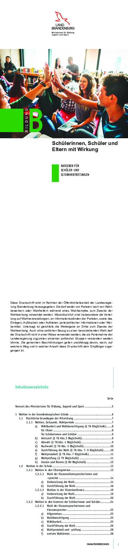 Broschüren für Eltern-, Lehrer- und Schülervertretungen