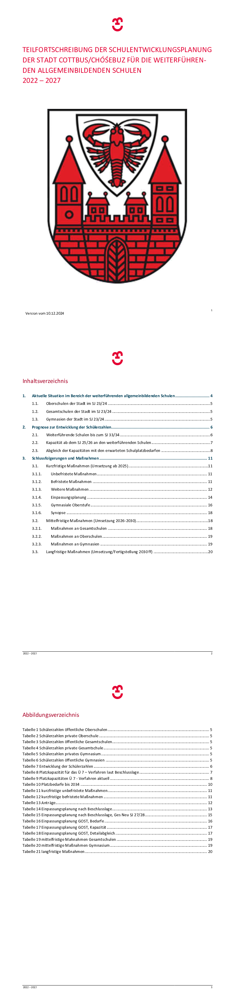 Teilfortschreibung Schulentwicklungsplan der Stadt Cottbus für weiterführende Schulen