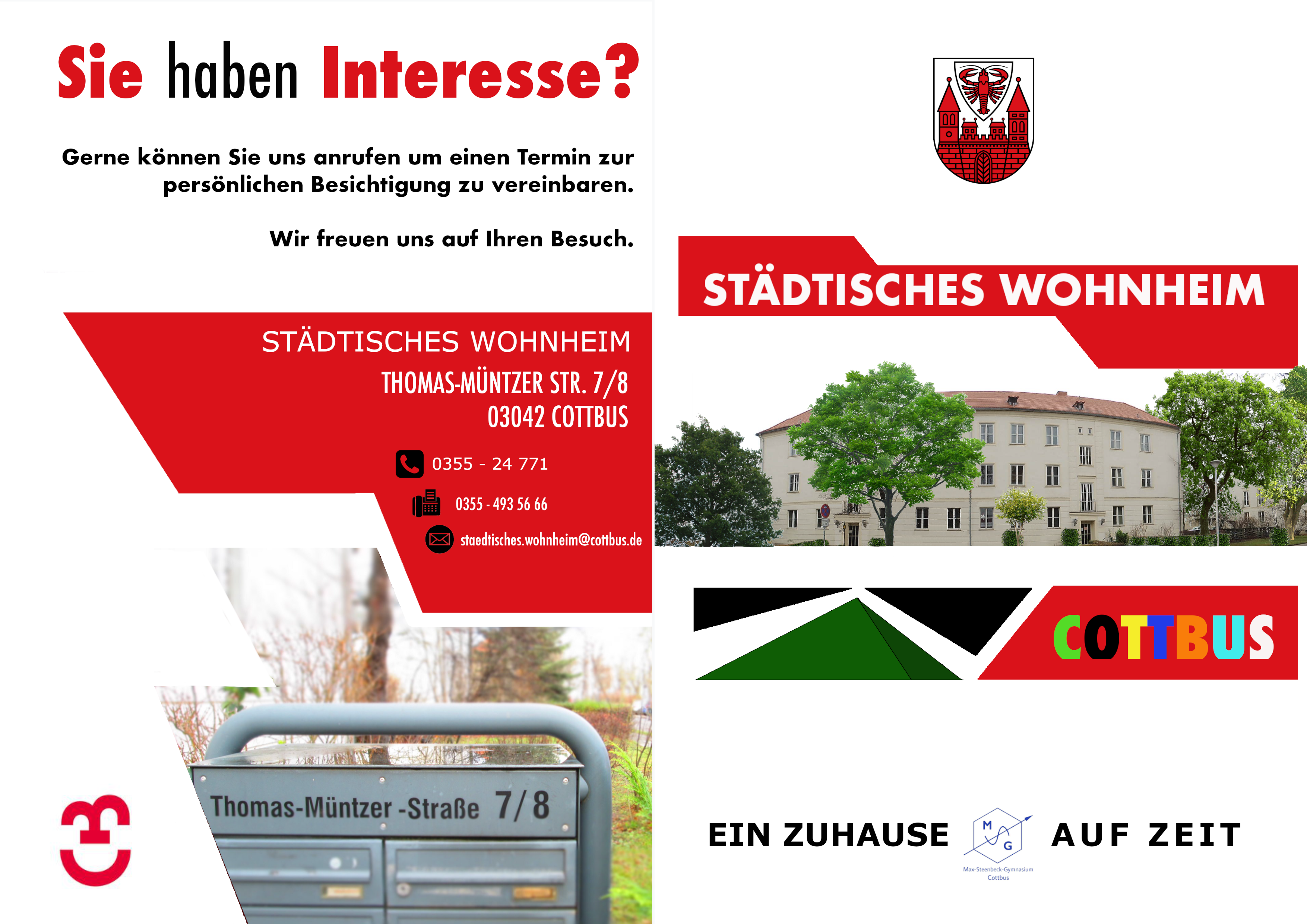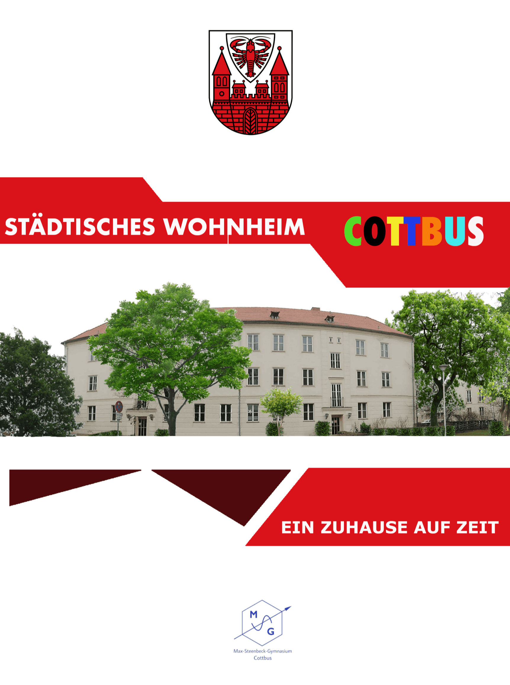 Das Städtische Wohnheim in Cottbus/Chóśebuz ist bereits seit vielen Jahren mit der Betreuung der Kinder und Jugendlichen des Max-Steenbeck-Gymnasiums betraut. In dieser Zeit haben viele Schüler ein Zuhause auf Zeit in unserem Wohnheim gefunden, wo sie sich in Ruhe auf ihren schulischen Alltag konzentrieren konnten. Das Wohnheim untersteht dabei der Stadtverwaltung Cottbus und arbeitet eng mit den Gremien der Stadt und der Schulen zusammen.