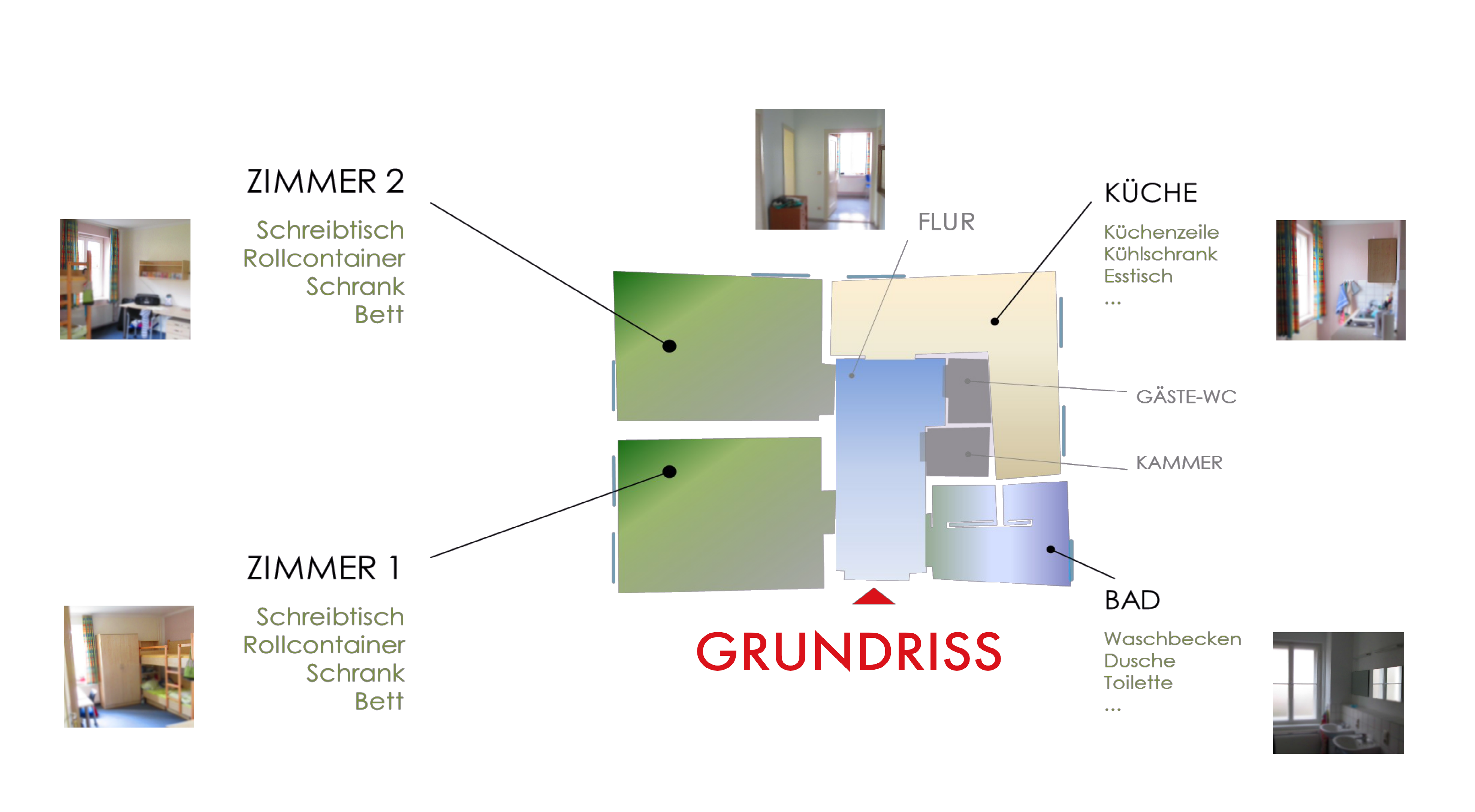 Das Wohnheim liegt in einer ruhigen Gegend direkt am Warmbad Sandow gegenüber der Blechen Grundschule. In der Nähe befindet sich ein Einkaufszentrum (Rewe, Aldi,KiK usw.) sowie mehrere Gaststätten und Bistros. Eine Verbindung in die Innenstadt ist durch Bus und Bahn, die ihre Haltestellen in unmittelbarer Nähe haben, gegeben. Dadurch ist auch der Schulweg problemlos zu meistern. Wer gerne mit dem Fahrrad fahren möchte, kann die Fahrradkeller zum Unterstellen nutzen.