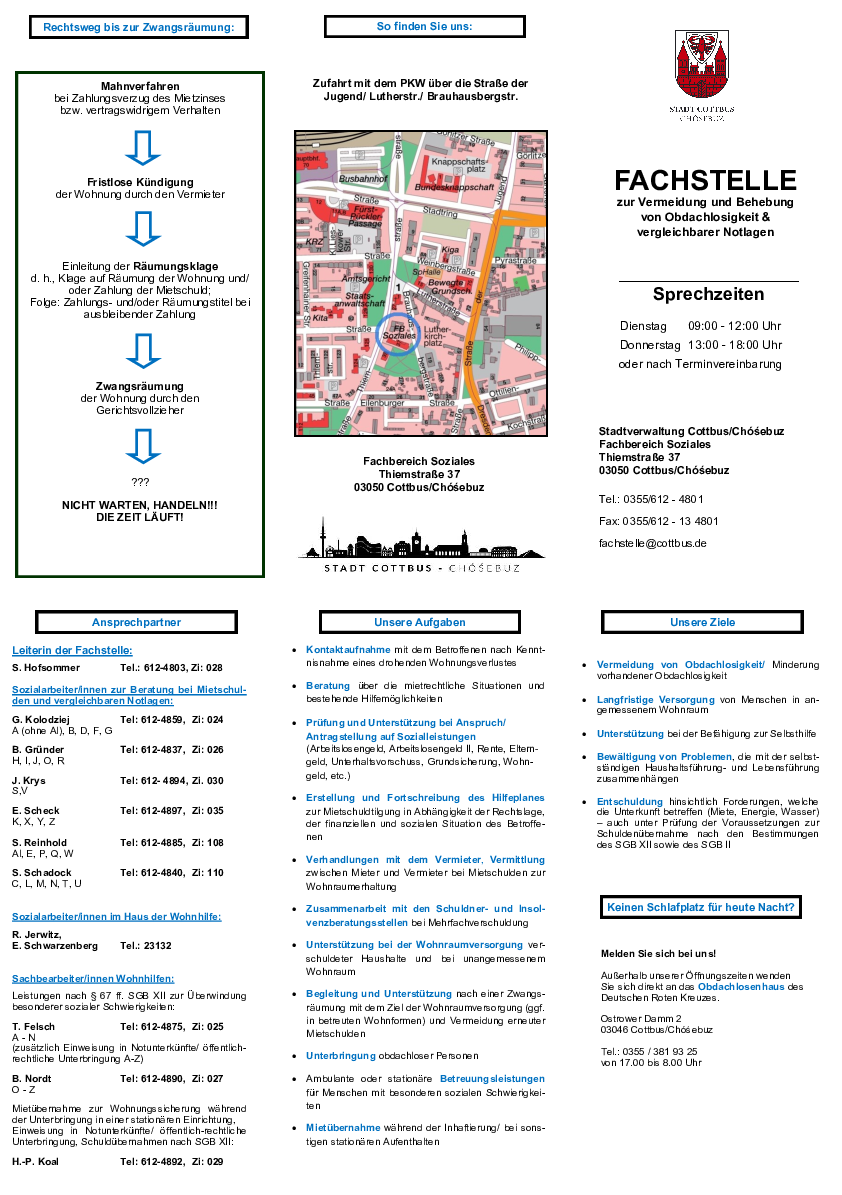- Beratung zum Thema Wohnhilfen in der Fachstelle zur Vermeidung/Behebung der Obdachlosigkeit