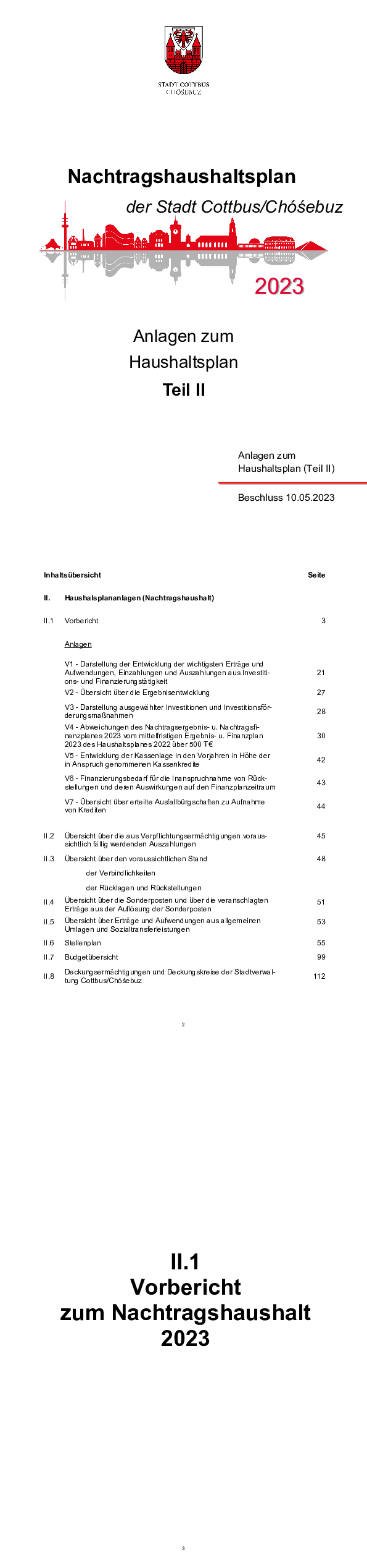 In der Stadtverordnetenversammlung am 10. Mai 2023 wurde der folgende Nachtragshaushalt der Stadt Cottbus/Chóśebuz für das Jahr 2023 beschlossen.
