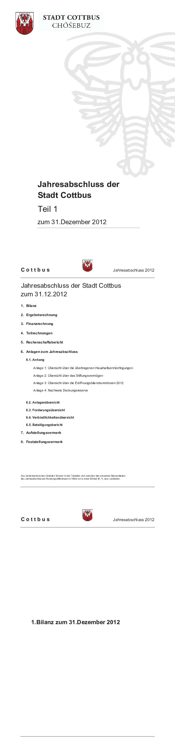 „Beschluss über den Jahresabschluss 2012“ der Stadtverordnetenversammlung Cottbus vom 24.04.2019