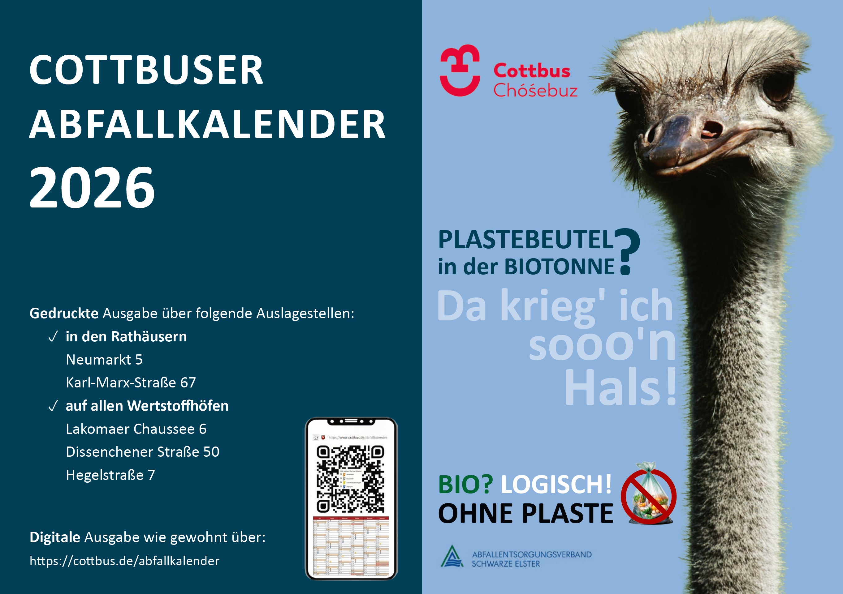 Die Stadt Cottbus/Chóśebuz bietet ihren Bürgerinnen und Bürgern umfassende Dienstleistungen im Bereich der Abfallentsorgung an. Dazu zählen die Beratung zur Abfallvermeidung und -verwertung, die Bereitstellung von Informationen zur korrekten Trennung von Wertstoffen wie Altpapier, Altglas, Leichtverpackungen und Bioabfällen sowie die Organisation der Entsorgung von Sperrmüll, Elektro- und Elektronikaltgeräten, Schrott und Schadstoffen. Zudem werden Deponieführungen angeboten und die Sicherung sowie Rekultivierung der Siedlungsabfalldeponie Cottbus-Saspow gewährleistet.