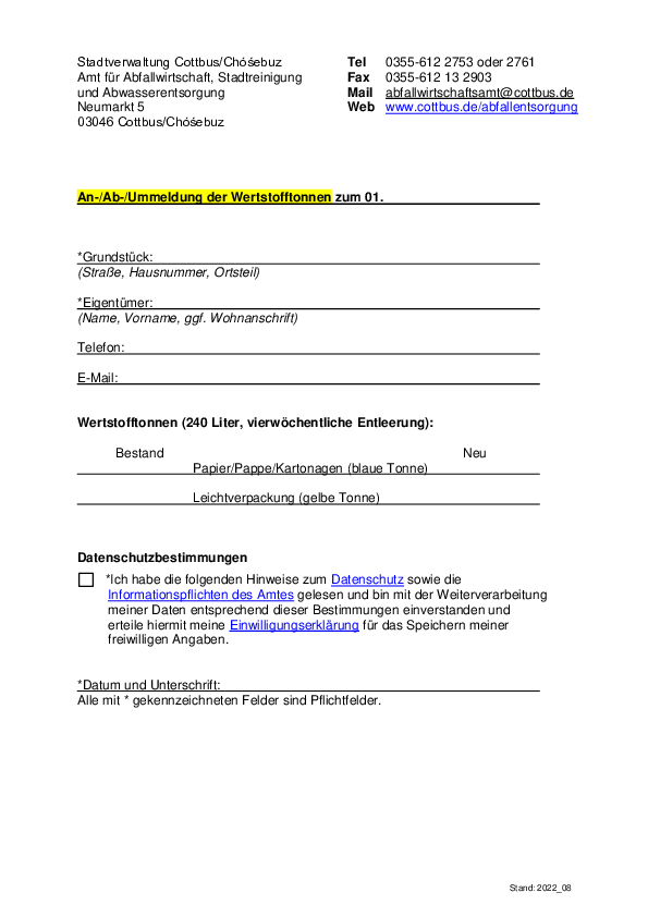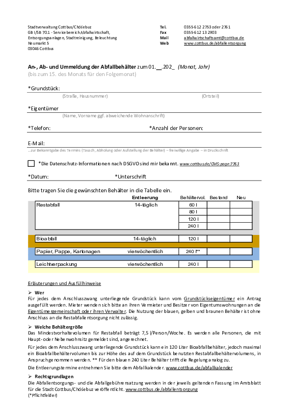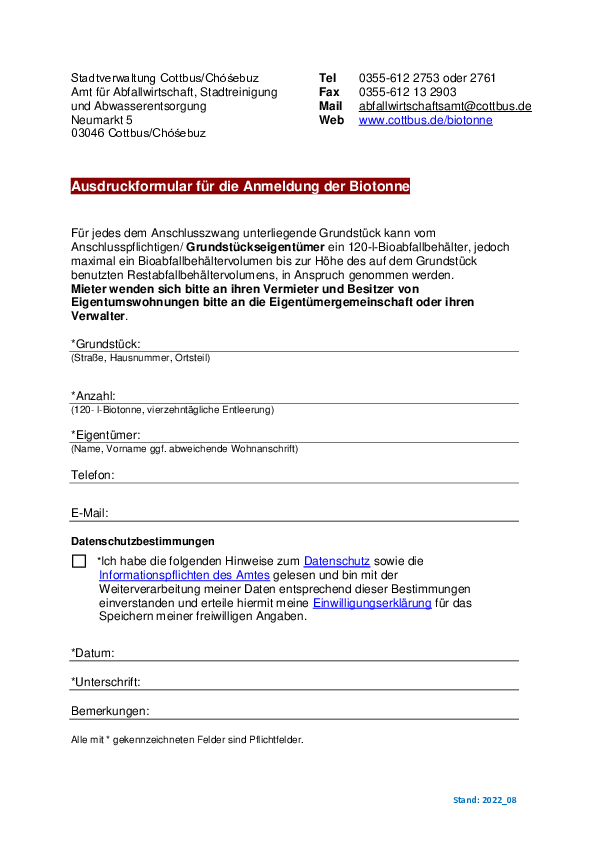 - mit dem Onlineformular: www.cottbus.de/biotonne