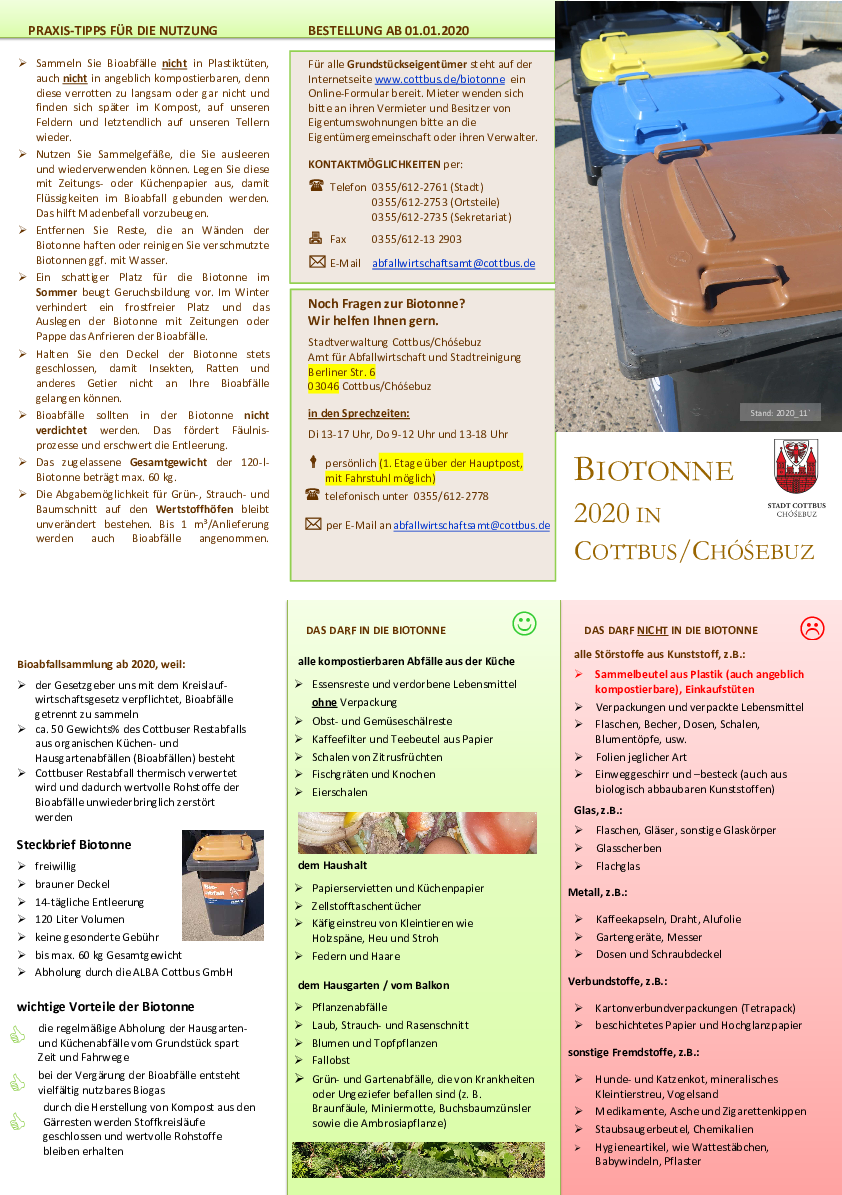 - Auskunftserteilung zur Bioabfallsammlung, Flyer Biotonne ‧ PDF ‧ 2.39 MByte ‧ 29.10.2020