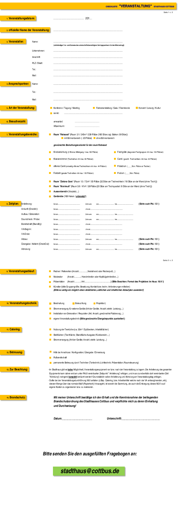 Die Reservierung des Trausaals erfolgt bei der Anmeldung zur Eheschließung auf dem Cottbuser Standesamt.