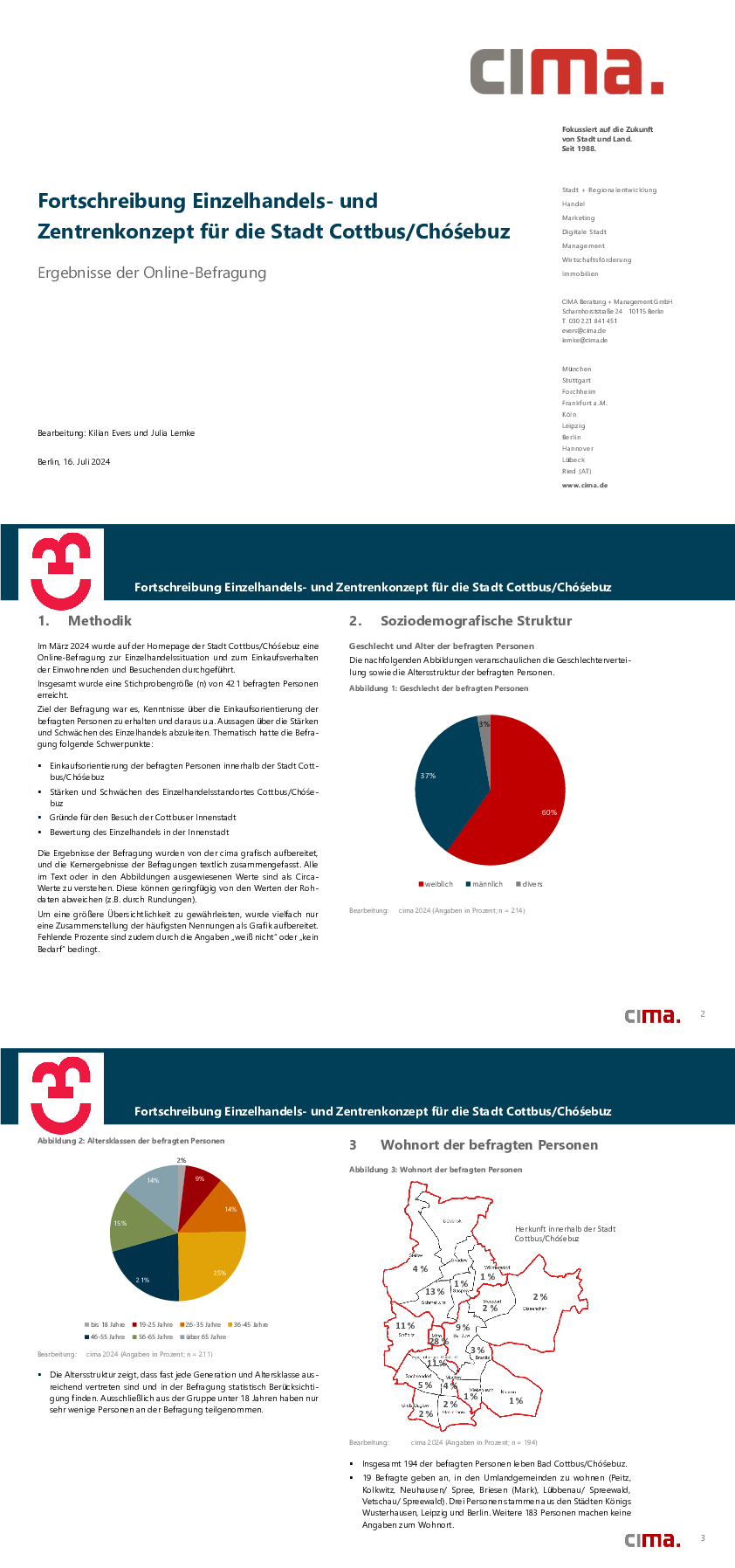 Herzlichen Dank allen Teilnehmenden an unserer Umfrage! Ihre Antworten sind ein wertvoller Beitrag zur Einzelhandelsnutzung in Cottbus/Chóśebuz. Die Ergebnisse finden Sie hier zum Download: