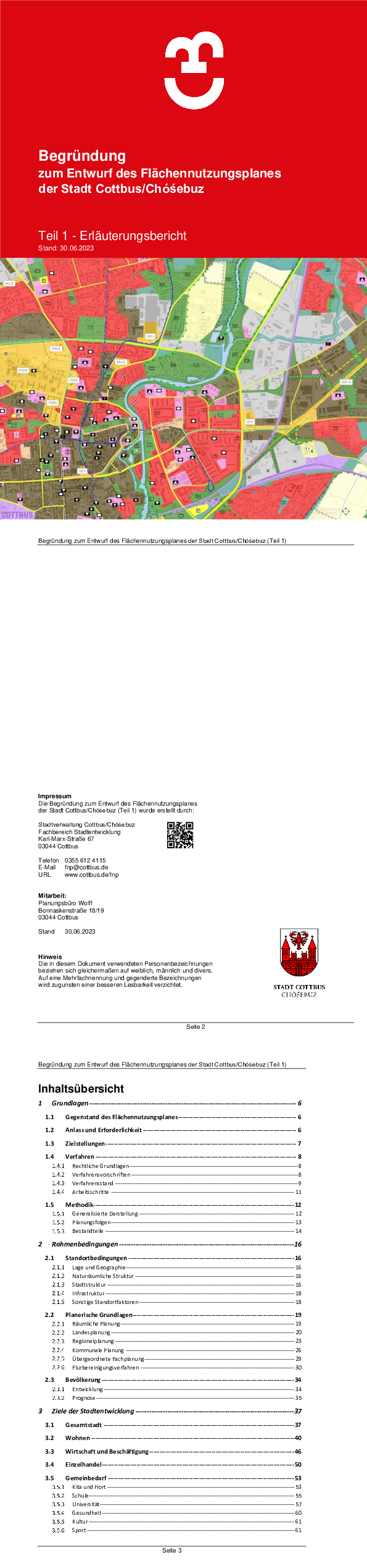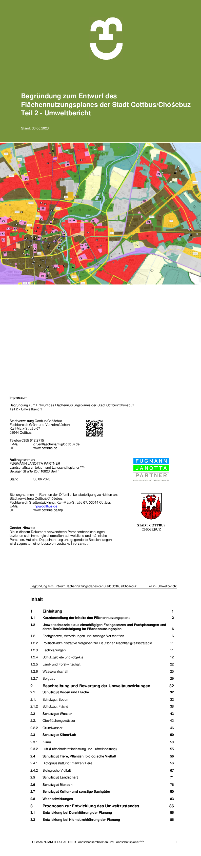 In Cottbus/Chóśebuz ist das förmliche Verfahren zur Neuaufstellung des FNP mit dem Aufstellungsbeschluss (Beschluss-Nr. IV-068-23/10) am 24.11.2010 gemäß § 2 Abs. 1 BauGB eingeleitet worden. Das Erfordernis der Neuaufstellung des FNP war u.a. aus folgenden Gründen gegeben: