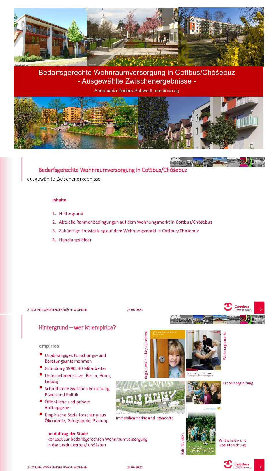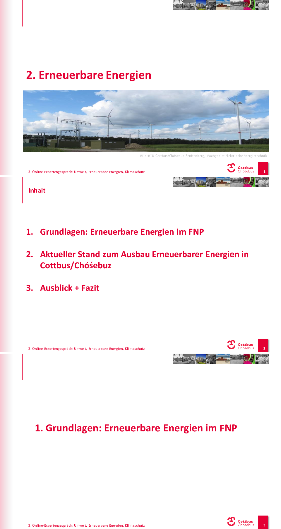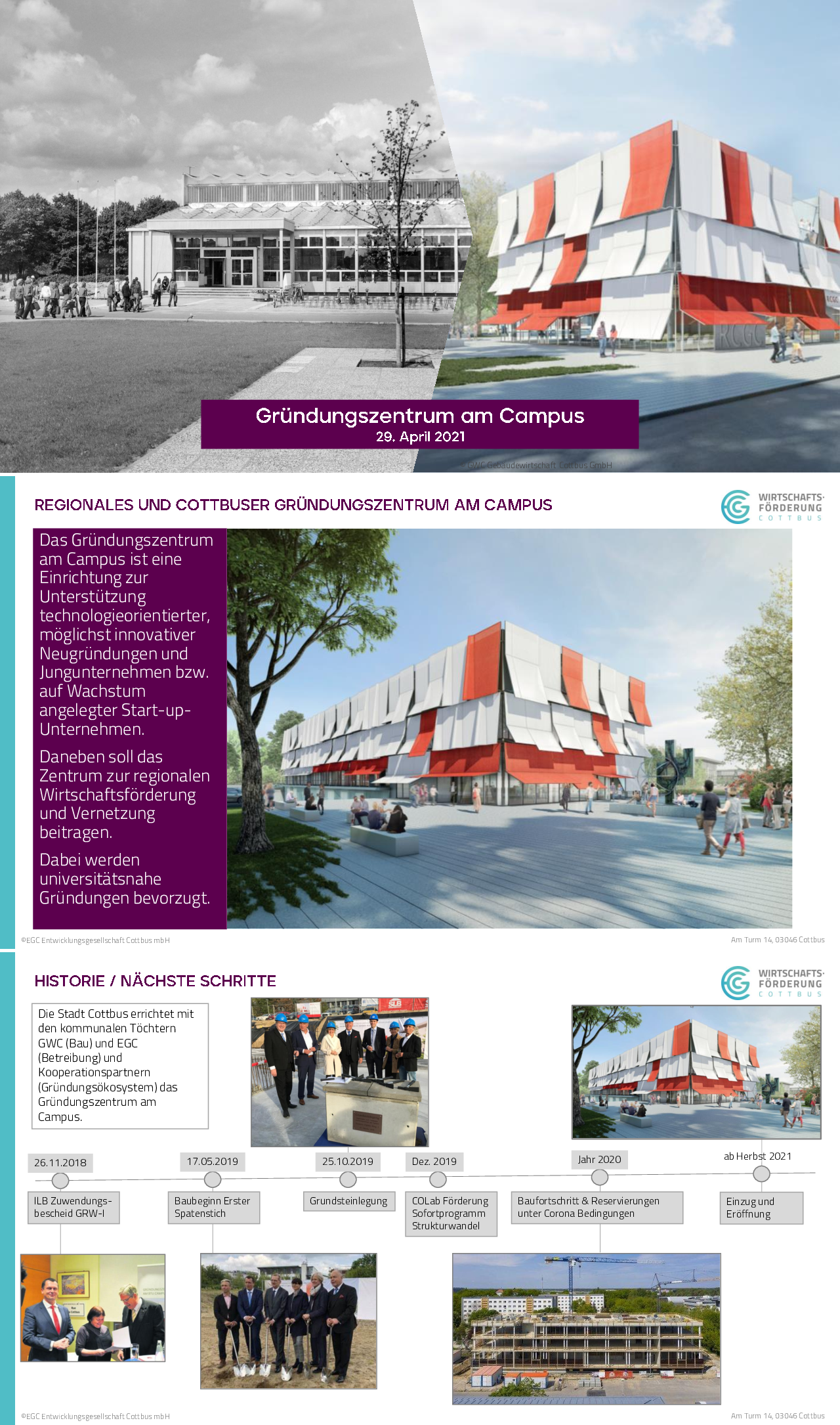 Am 29. April 2021 fand ein öffentliches Online–Expertengespräch in der Reihe „Strukturentwicklung, Wirtschaft und Wohnen im Zusammenhang mit dem Flächennutzungsplan“ statt. Bürgerinnen und Bürgern konnte sich für diese Veranstaltung anmelden, um direkt von verantwortlichen Vertretern der Wirtschaft und der Kommune über die konkreten Auswirkungen des Strukturwandels auf Cottbus/Chóśebuz informiert zu werden.