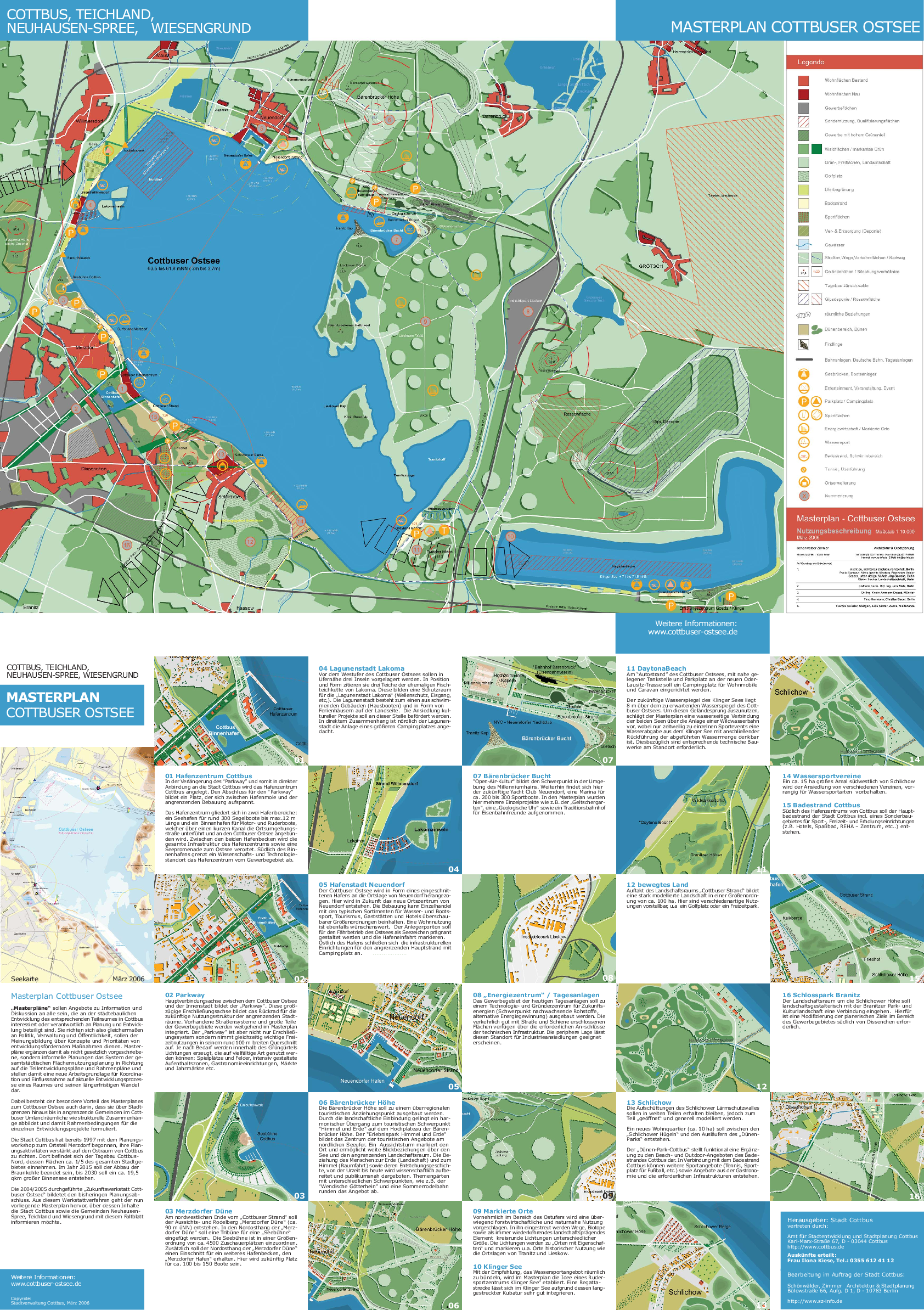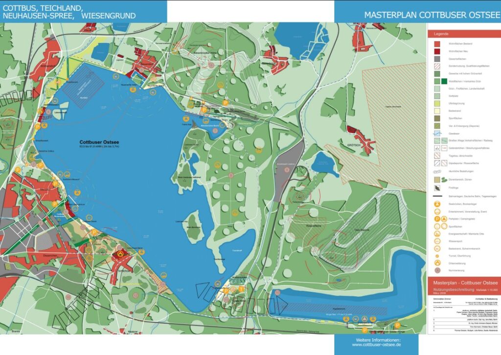 Auf den Ergebnissen des Ideenwettbewerbes aufbauend wurde mittels eines aufwändigen Abstimmungsverfahrens in einer „Zukunftswerkstatt“ der Masterplan „Cottbuser Ostsee“ erstellt. Der Masterplan bündelt alle Entwicklungsziele, welche durch die Anliegergemeinden favorisiert wurden. Er formuliert über die Stadtgrenzen hinaus räumliche und strukturelle Zusammenhänge und die Rahmenbedingungen für die einzelnen Entwicklungsprojekte. Insgesamt lassen sich aus dem Masterplan 17 Schwerpunktprojekte ableiten.
