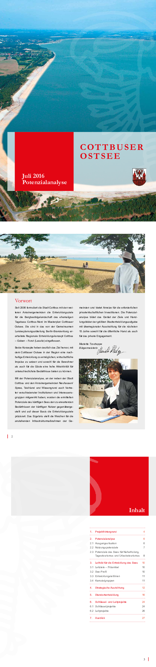 Im September 2016 haben die Stadtverordneten die Potenzialanalyse „Cottbuser Ostsee“ beschlossen. Im Folgenden stellen wir Ihnen die Beschlussvorlage, die Broschüre mit umfangreichen Informationen und ein Faltblatt mit einer Kurzübersicht zur Verfügung.
