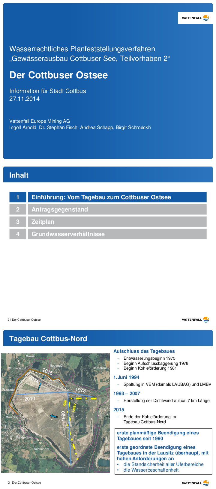 Präsentation: Information für Stadt Cottbus am 27.11.2014 durch die Vattenfall Europe Mining AG