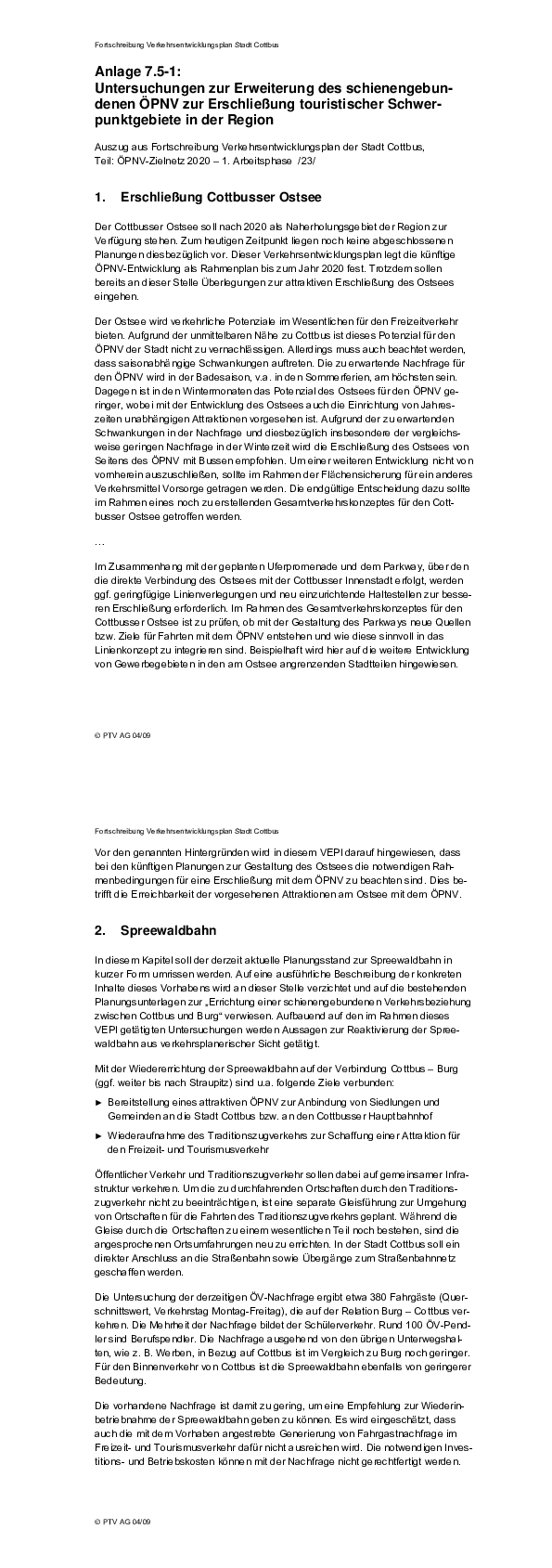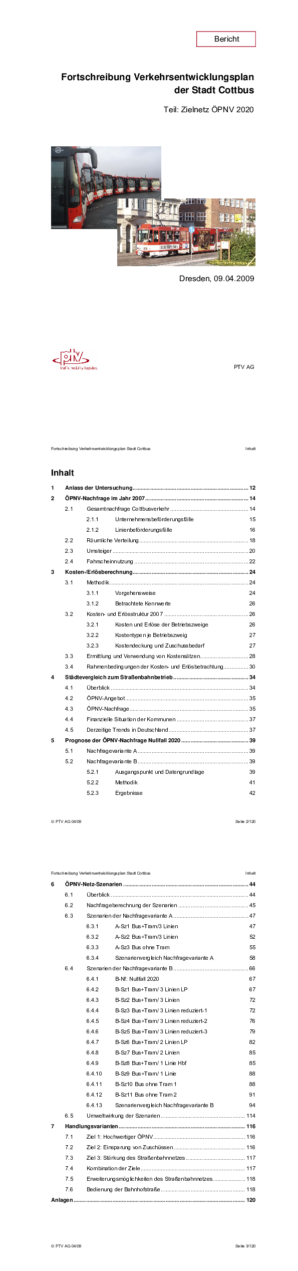 - Das Ergebnis der Studie "Fortschreibung Verkehrsentwicklungsplan der Stadt Cottbus-Teil: Zielnetz ÖPNV 2020" zum Download: