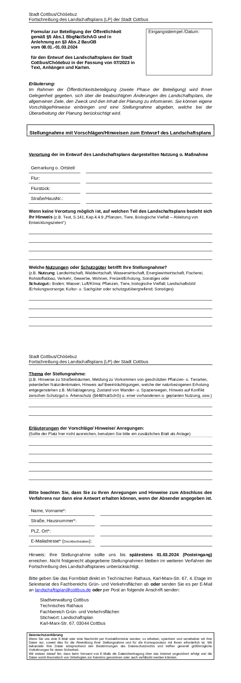 Beteiligung der Öffentlichkeit zum Entwurf des Landschaftsplanes der Stadt Cottbus/Chóśebuz
