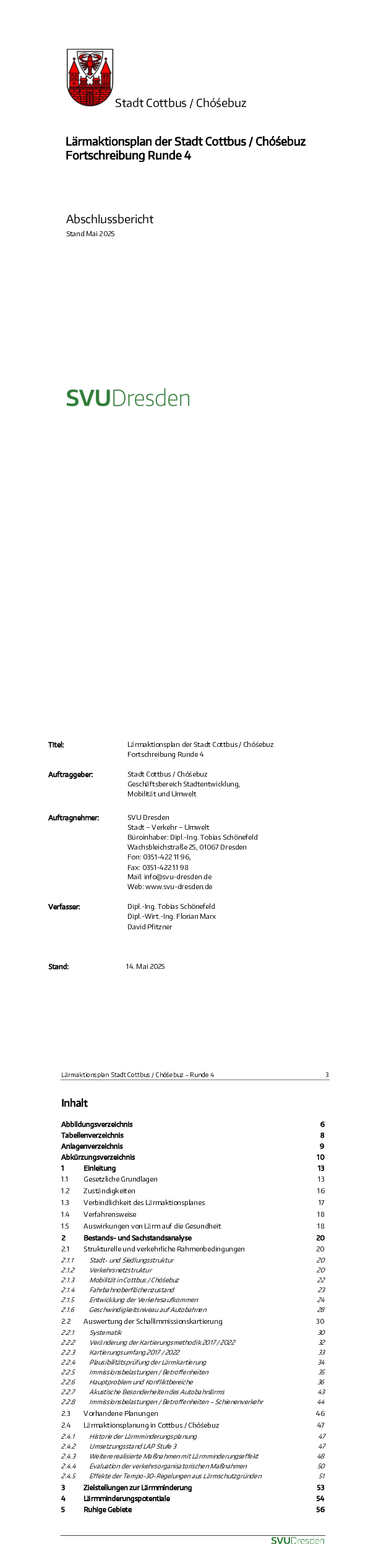 Lärmaktionsplan für die Stadt Cottbus/Chóśebuz - Fortschreibung 2024/2025 (Stufe 4)