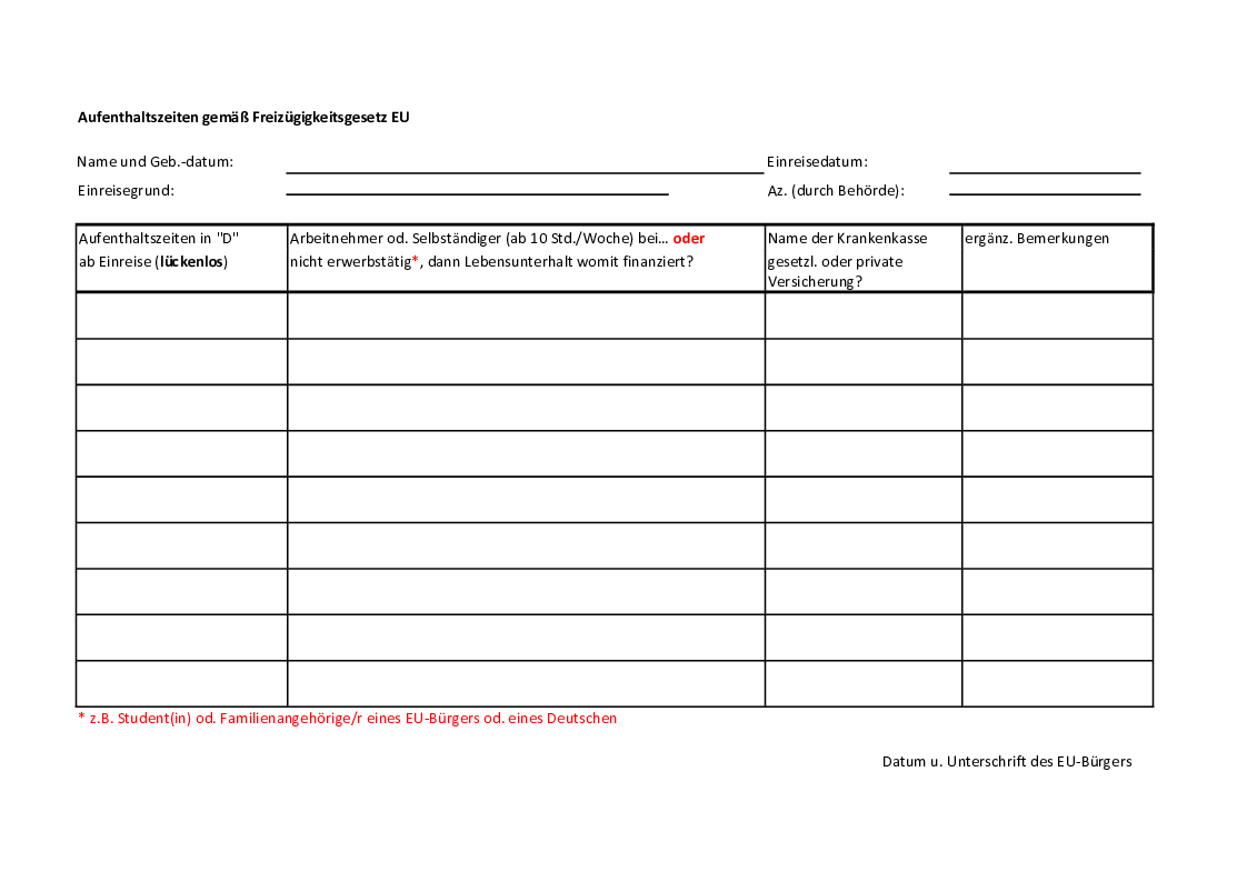 Aufenthaltszeiten gemäß Freizügigkeitsgesetz EU