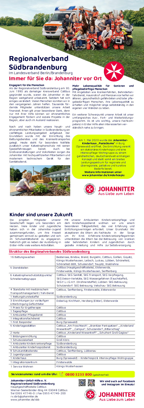 Flyer: Johanniter - Regionalverband Südbrandenburg