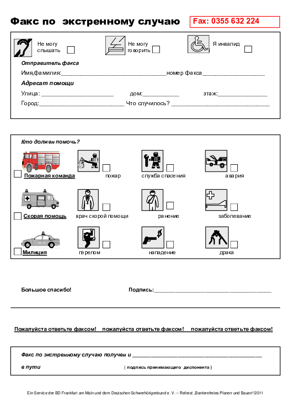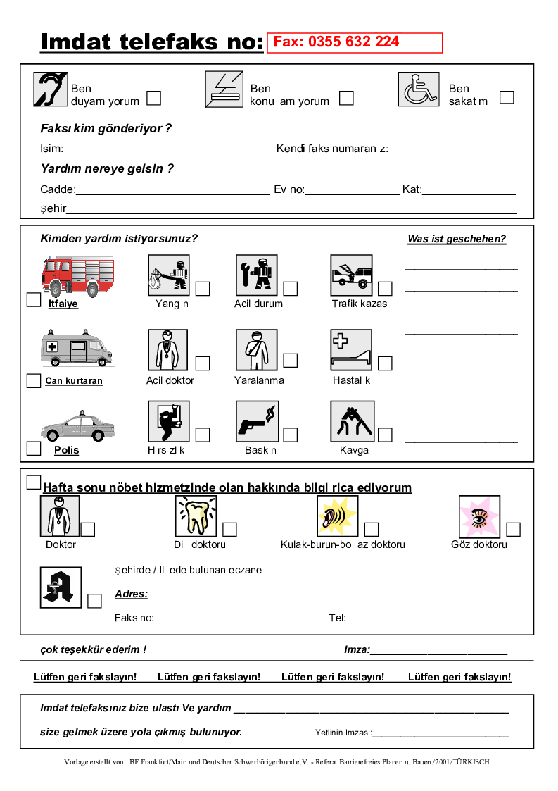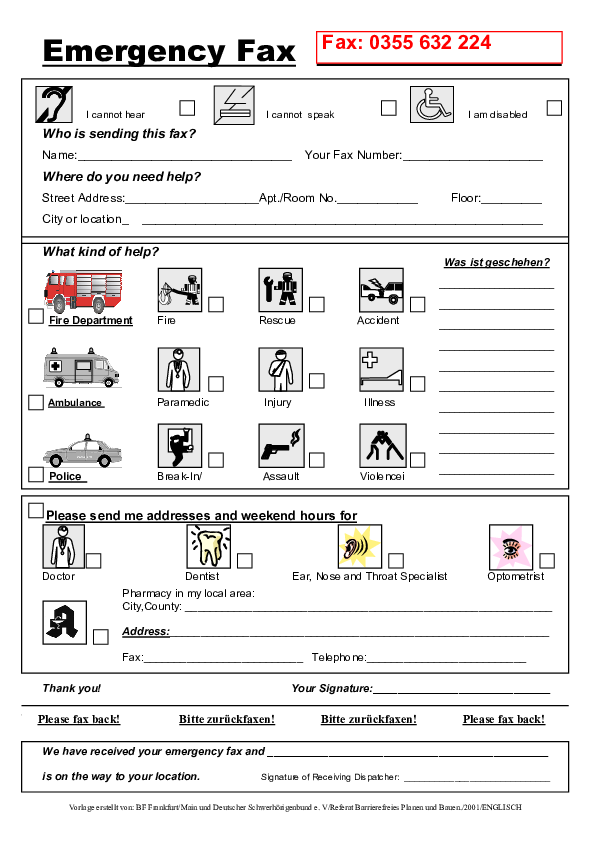 Notfall-Telefaxe in 10 verschiedenen Sprachen (Emergency Fax in 10 different languages)
